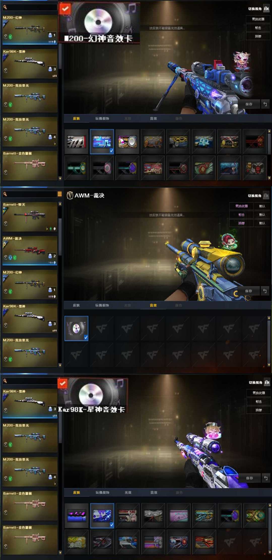 枪王3♥电竞之星幻神③皮音效裁决三件套璀璨漫游星神音效金芒白虎音效♥G36幻影雷暴柯尔特COP生化全