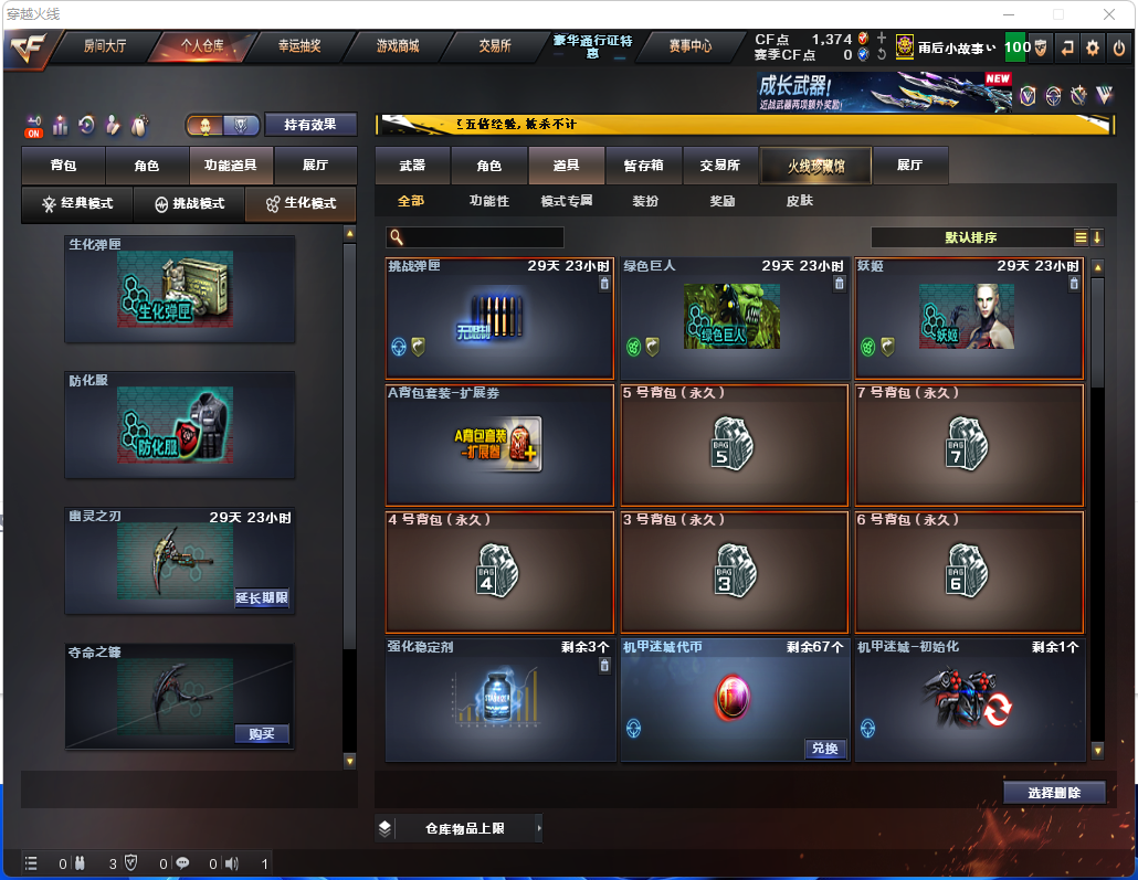 租5送1角色名:生化号