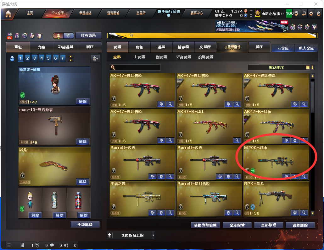 游戏区服:穿越火线-电信区-广东一区