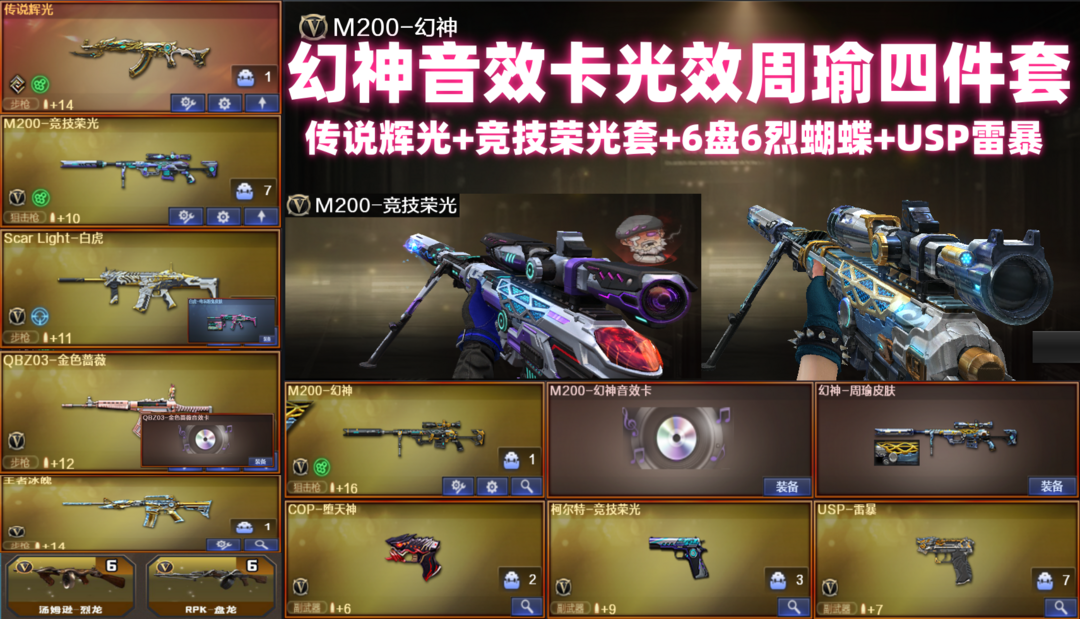 M200-幻神音效卡周瑜皮肤光效四件套✅传说辉光M竞技荣光USP雷暴白虎蔷薇带音效➕生化6盘6烈蝴蝶