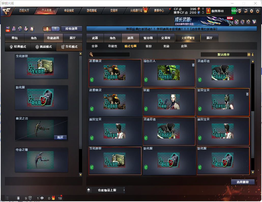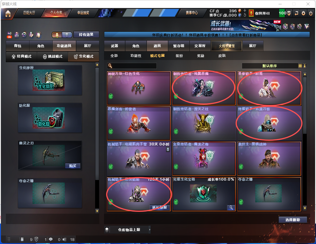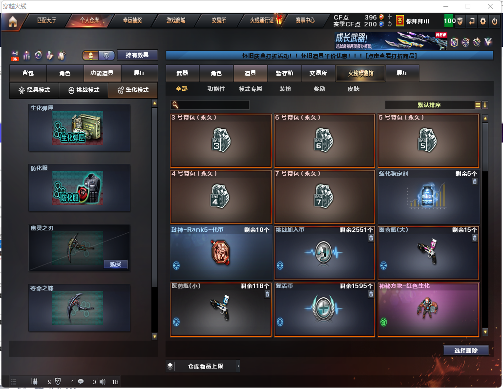 生化炽芒蝶刃♉满氪八面凌龙♉14个生化皮肤♉四防生化背包♉幻神可排位♉满榴弹不退包全鬼♉伪6盘6烈