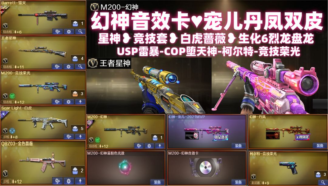 M200-幻神音效卡⚡幻神宠儿丹凤双皮USP雷暴COP星神M竞技荣光套白虎蔷薇毁灭三件✅生化6烈6盘