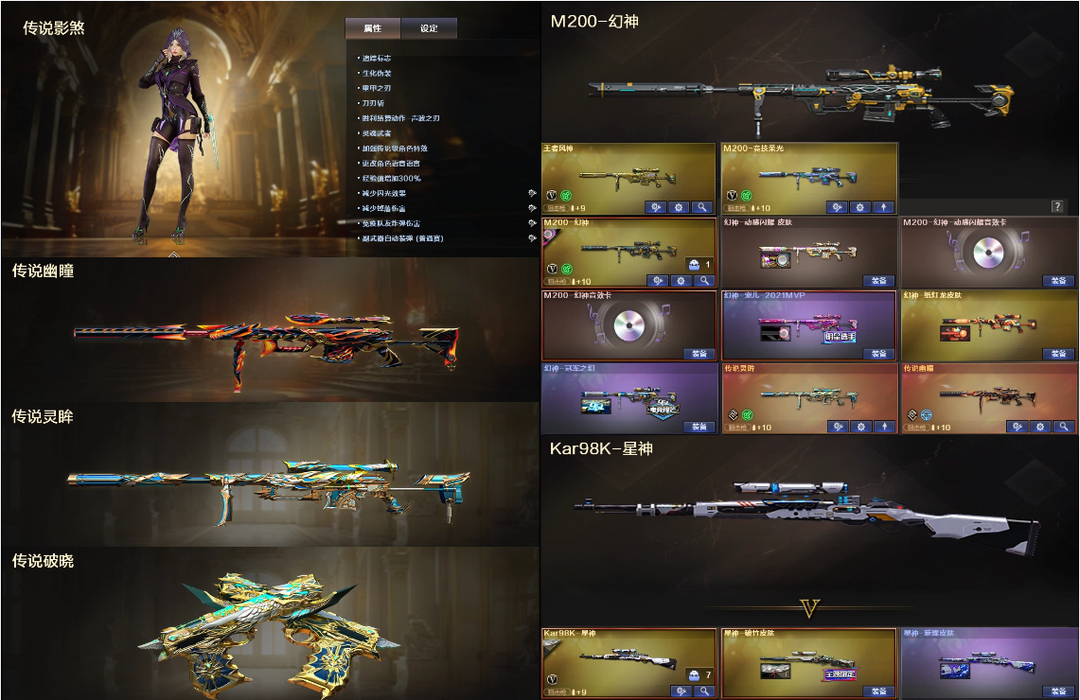 4传说幽瞳灵眸4防影煞♉幻神8皮宠儿音效+星神百城裁决♉QBZ幻影白虎九尾+4副鲨臂小刀♉4防隼鹰