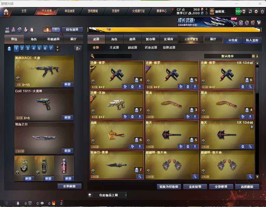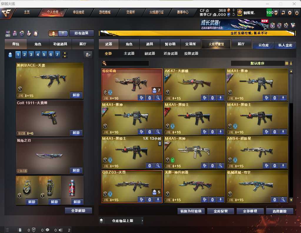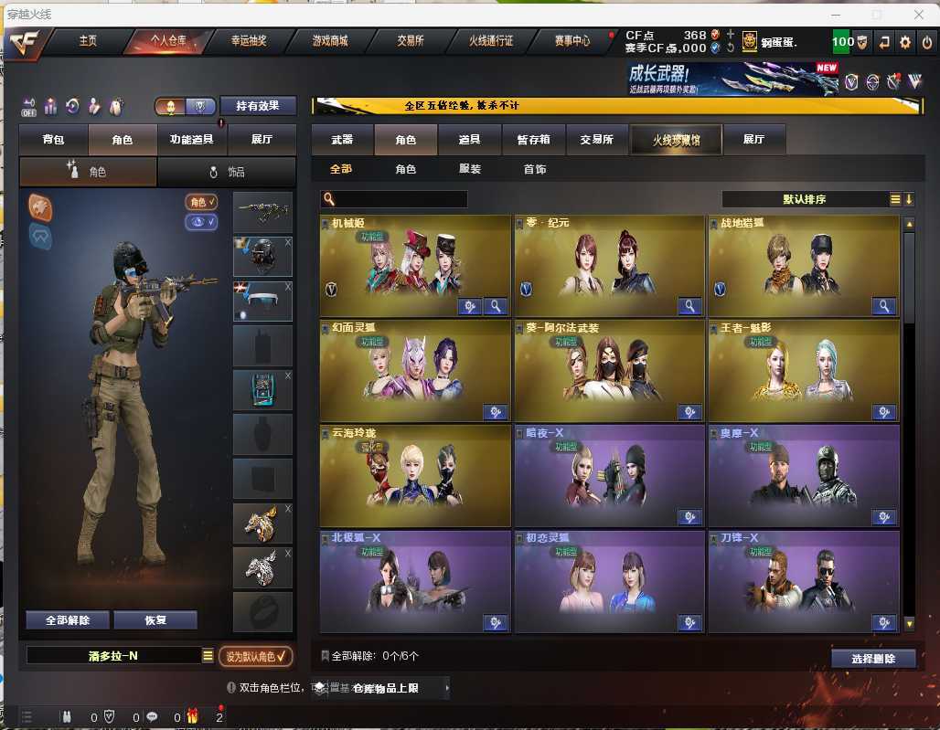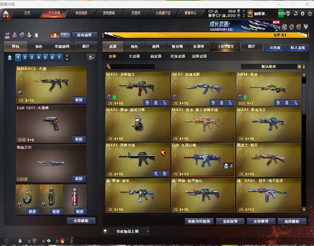 限制: 租号3次及以上 | 撤单率<50%才可租用此帐号装备描述:最新轮椅加利尔-天袭❤️传说暗裔白虎天罚裁决QBZ独角V竞技荣光套❤️机械姬王者魅影赵云CFS