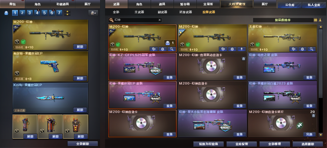 神威莲华❤神威天绫❤满传说角色武器❤黄狮子❤双泡泡象❤双幻神7皮音效卡❤超核玩家❤三蝴蝶刀