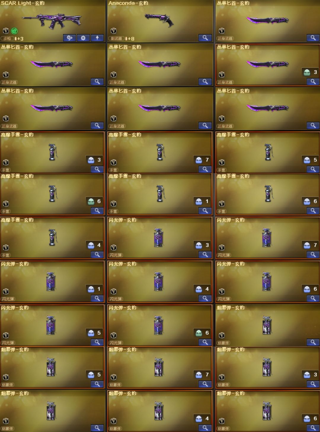光海夜岚天袭EP全套玄豹套星骇幽瞳圣谕幻影天戎序列号⭐幻神卡KZ13皮⭐裁决音效卡4皮⭐QBZ卡7皮