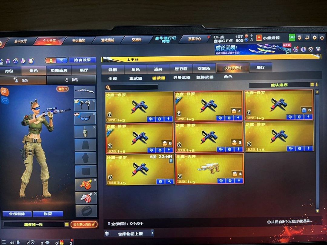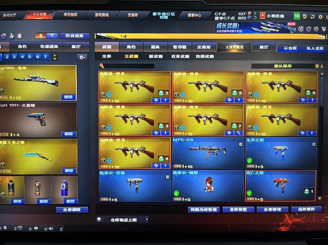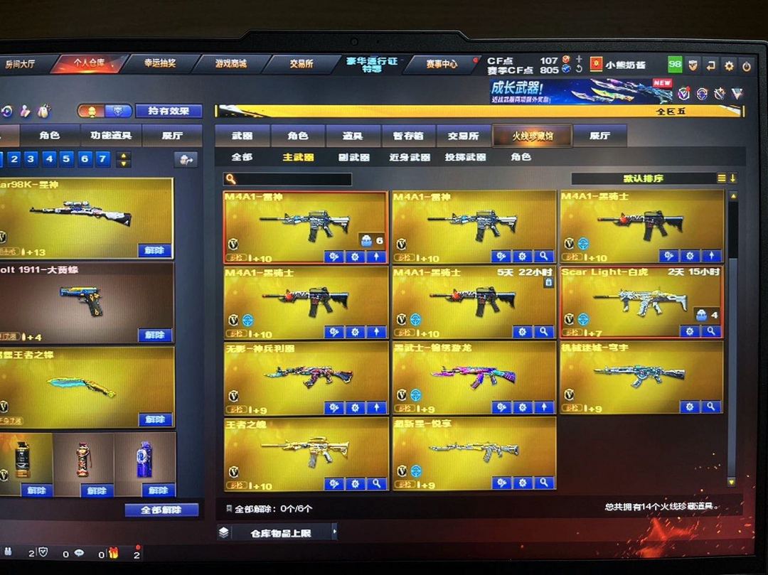 M200竞技荣光➕裁决➕音效卡✔️7烈龙➕蝴蝶✔️6盘龙➕炼狱✔️2黑骑士➕2雷神➕2火麒麟等