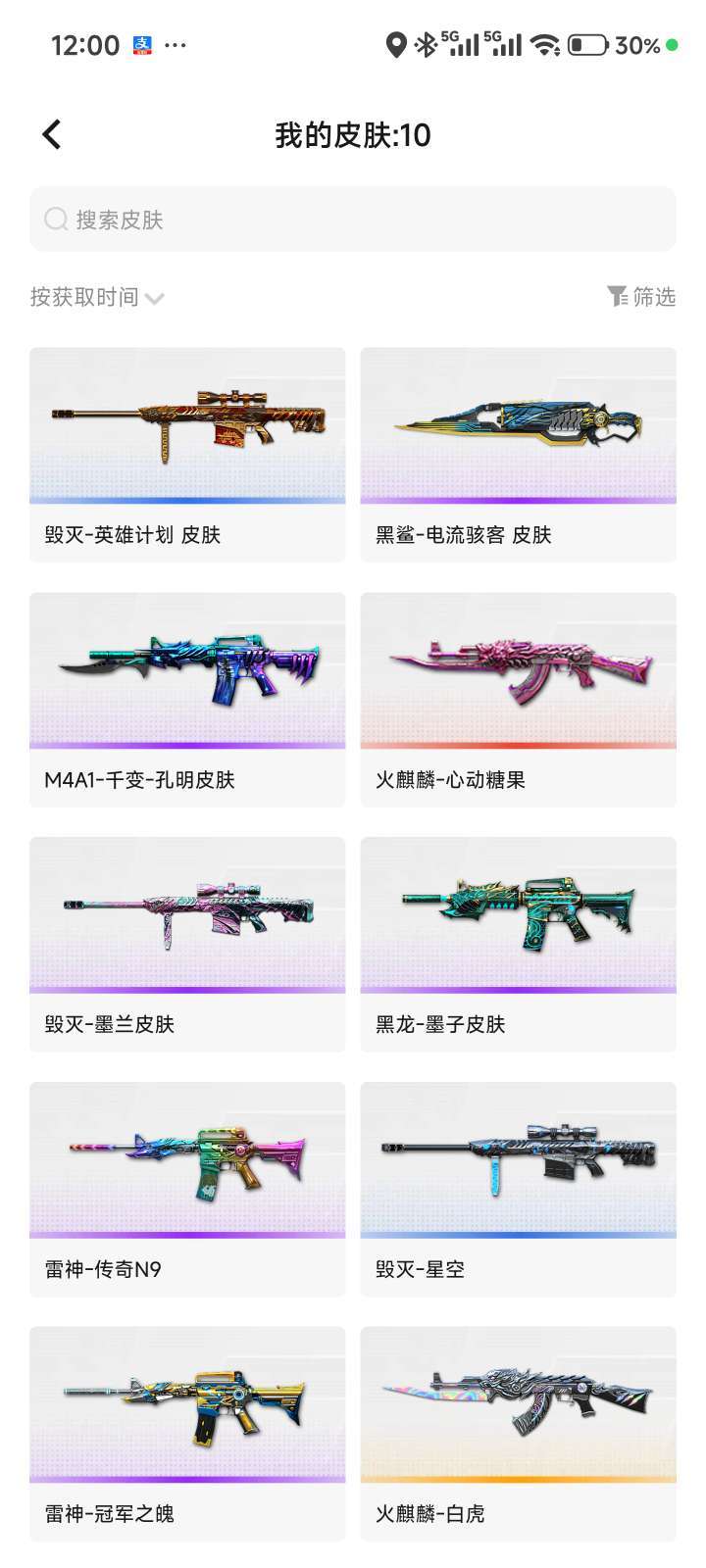 50+V幻神G36c幻影,风神,竞技荣光套各种音效卡皮肤等等热门武器