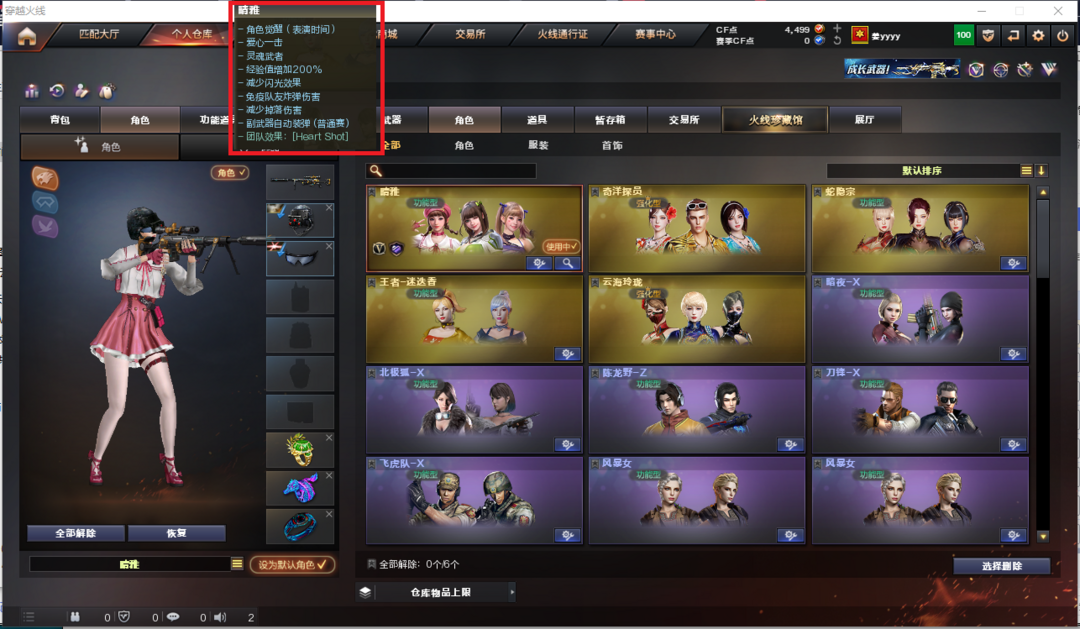 装备描述:排位:可以、、、、、、、、、、爆破四防:幻神、98K星神(带音效)、、、、2个COP云龙、2个柯尔特竞技荣光、、、、G36幻影、QBZ191银翼、白虎之魄、QBZ金色蔷薇、炽芒蝶刃、、、星神音效、蔷薇音效、雷神音效、极光音效、黑骑士音效、、、2套云龙、2套雷霆王者、、、爆破四防(晴雅).