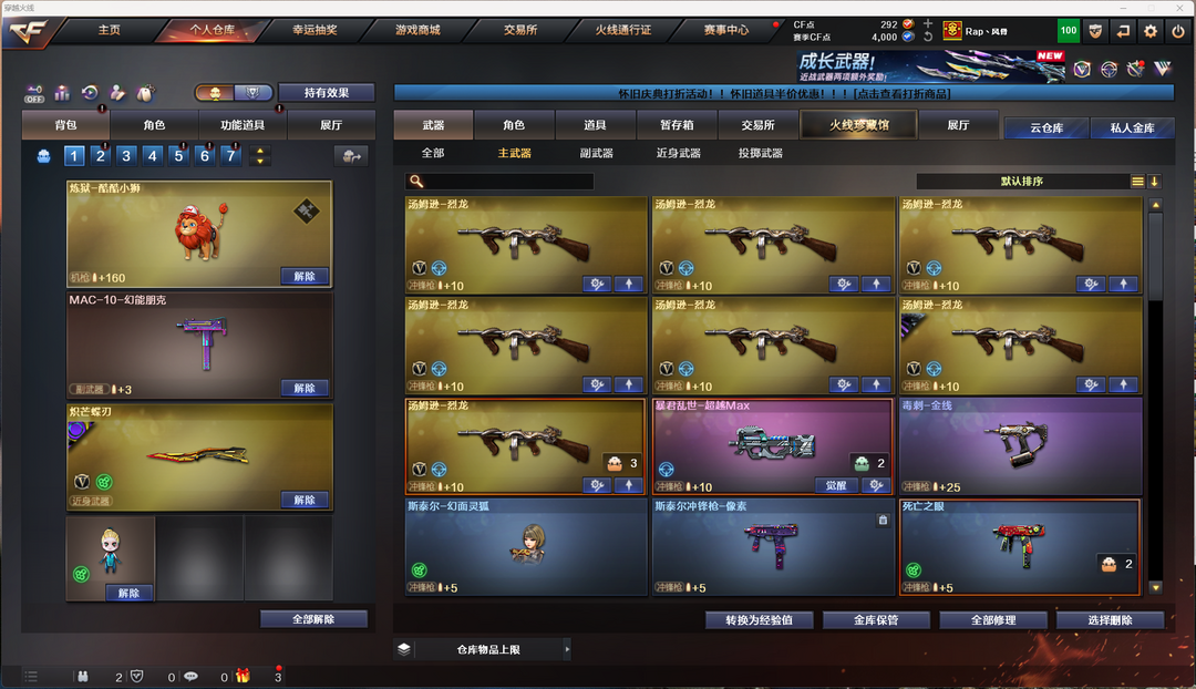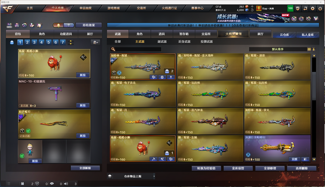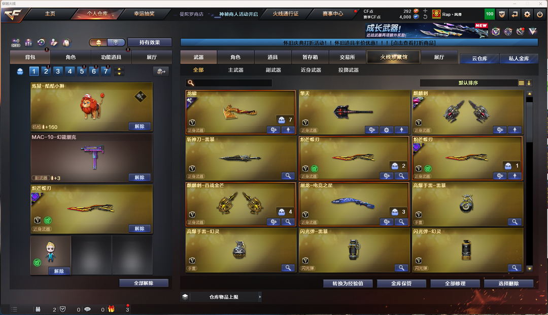 神威莲华狮子炼狱+2把蝴蝶刀巅峰荣耀蝴蝶刀6盘钟馗炼狱带炼狱音效卡6烈龙毒刺幻面灵狐生化角色满