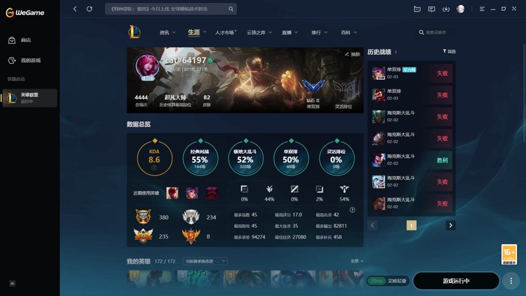 限制: 撤单率<50%才可租用此帐号英雄: 172