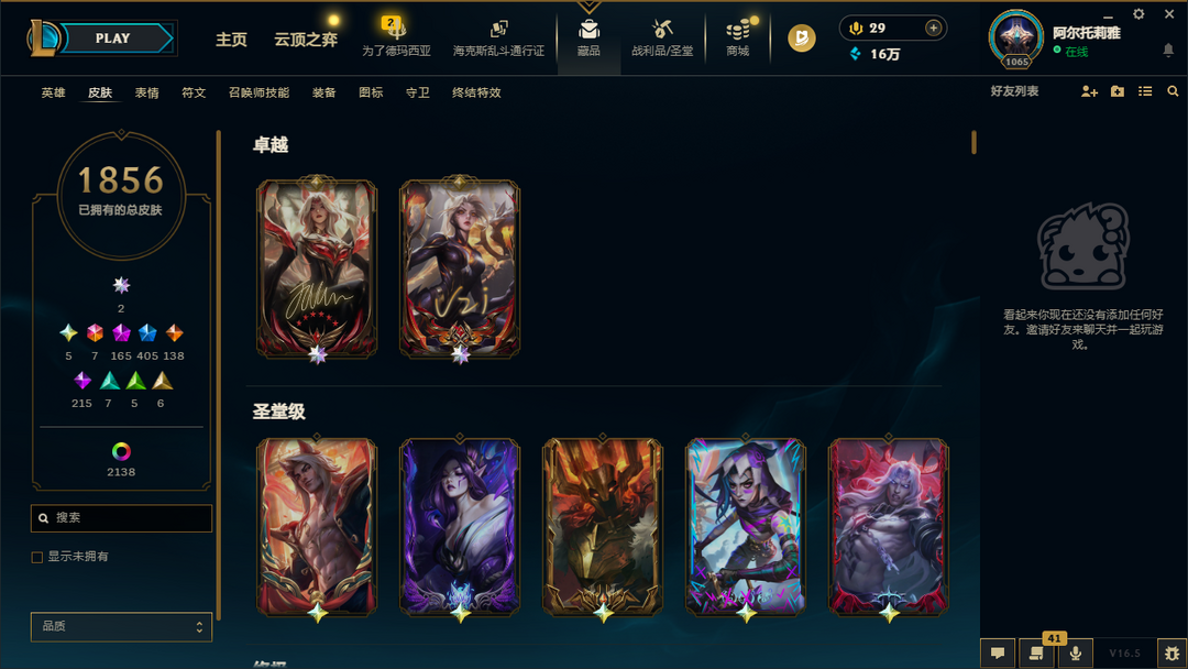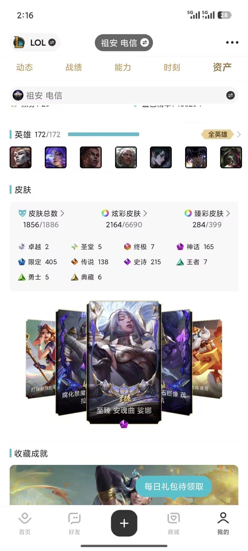 祖安1856原皮丨签名阿狸卡莎丨全圣堂全幻想丨全神话丨限定差11张丨284臻彩丨2164炫彩
