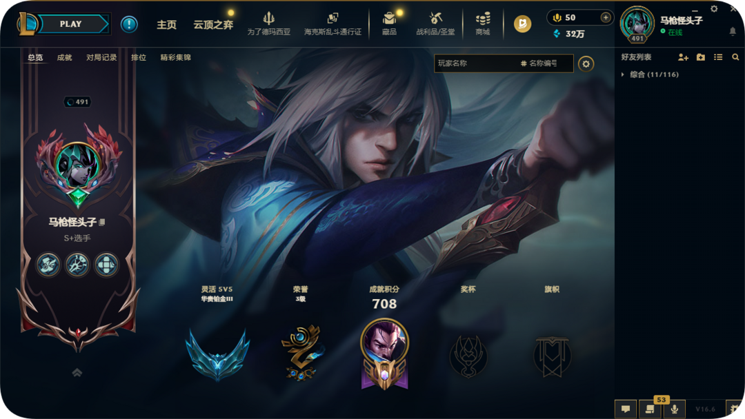 段位:491级 华贵铂金IV