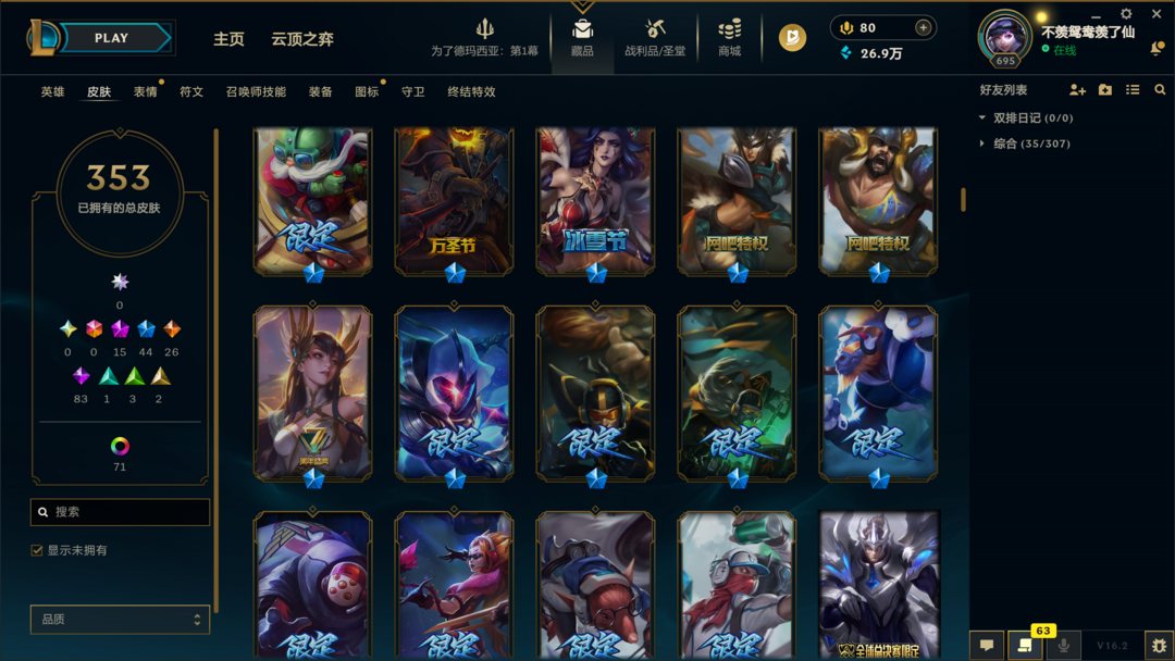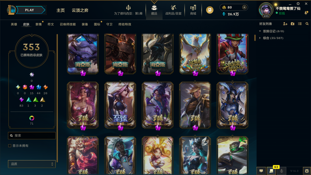 353皮肤〓15至臻海克斯〓斩星神王〓神龙尊者〓黑夜亚索