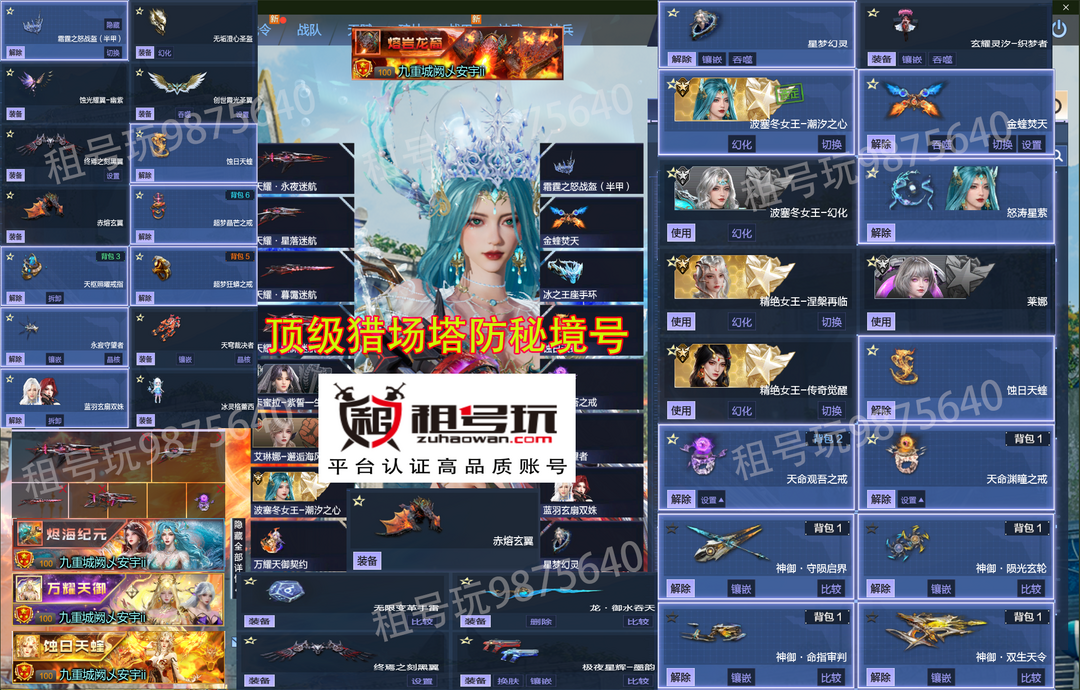 限制: 撤单率<40%才可租用此帐号装备描述:顶级猎场塔防满配号〖安全模式可帮解除,点上号器的连系号主发安全码 等待会即可〗秘境满伤害满基础,45风神武43冰神武伤害超高 双再生】【✅新增道具介绍✅】:新坐骑狱焰暗麟【波塞冬女王-潮夕之心+涅槃双女王,冰火双色金蝰焚天翼,全套配件,传奇三女王】【返利波塞冬女王-幻化,神御套、天耀套-全皮满核心10+10】〖莱娜 | 天命观吾之戒,永寂守望者〗【最新变身女英雄望舒+璃璎丨全息搭建枪+焦油】【英雄影戍-玄械丨焚霄-玄烬丨蓝羽玄扇双姝升级丨无垢澄心圣盔丨塔防伴生灵冰灵格蕾西】卡蜜拉-紫誓一生丨冰雪皇冠霜霆之怒战盔,永夜迷航天耀全套皮肤带玄耀灵汐-织梦者皮肤全套【 最新✅涅槃再临精绝女王,蚀日天蝰坐骑,蛇灵霞帔,】新英雄陷阱焚霄,丨新史诗拉满✨五蜉灵天耀全套满配翅膀✨史诗角色包✨丨圣翼魅影双姝,天枢独角兽战盔,新僚机+新伴生灵丨山海套苍山隐皮肤+星寰凤弦流火 全套皮肤宠物皮,漱玉灵轮联动特效丨天枢照耀戒 |炎狱征服者之颅,达瑞娜,超梦狂蟒戒,超梦灵霄宝戒,8核心星寰套, 瑶光灵仙,大翅膀六道玄霄破天绫丨无极真君逍遥玄女幻化造化天羽