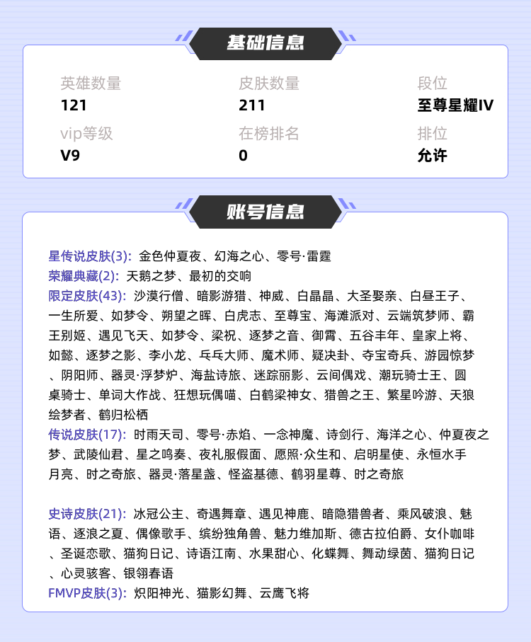装备描述:>>>>>>毁号,涉及毁坏虚拟财产罪及计算机安全罪,请文明游戏素质游戏,让我们共建美好租号平台>>>>>> 本游戏账号: ,英雄多,皮肤多。典藏皮肤2个,感受典藏皮肤带来的优质体验快感,FMVP皮肤3个,尽情享受FMVP皮肤带来的主角光环, 私人所属英雄皮肤有:小乔 天鹅之梦||伽罗 最初的交响妲己 愿照·众生和||诸葛亮 时雨天司||诸葛亮 武陵仙君||诸葛亮 鹤羽星尊||孙悟空 零号·赤焰||嫦娥 器灵·落星盏||狄仁杰 夜礼服假面||王昭君 永恒水手月亮||虞姬 启明星使||武则天 海洋之心||貂蝉 仲夏夜之梦||孙策 时之奇旅||鲁班七号 时之奇旅||马可波罗 怪盗基德||李信 一念神魔||杨玉环 星之鸣奏||李白 诗剑行,等等 注意事项: A.游戏过程中请不要恶意挂机或者不文明发言;B.恶意挂机、顶号等行为将被拉黑无法再次下单;C.进入游戏后中途请勿退出登陆,否则无法再次上号;D.部分账号由于异地登录可能会出现密码错误提示,通常再尝试5-6次后可上号。 |||||||||>喜欢本账号请点 ☆收藏☆ 方便下次租用,谢谢光临惠顾|||||||||