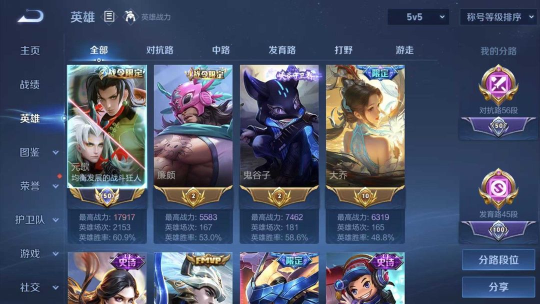 低价包天⭐元歌绝活哥⭐历史1.79w小国标元歌⭐历史金标马超露娜司空震耀鲁班七号⭐350皮高质量V8