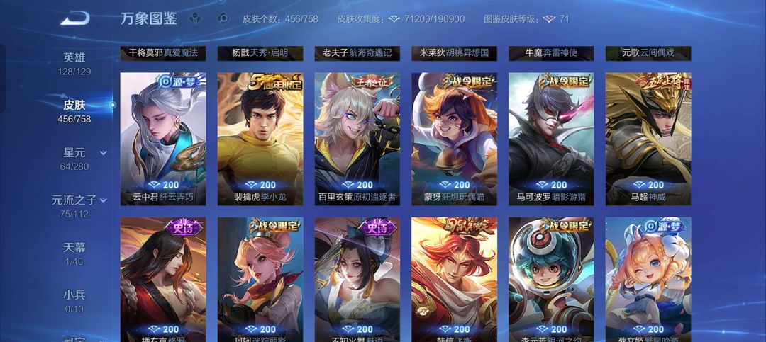 限制: 撤单率<25%才可租用此帐号装备描述:三典藏:全息碎影、银白咏叹调、星域神启 四星传说:幽冥之眼、未来机甲、幽冥火、时之思念 凤求凰、至尊宝、黄金狮子蝎子射手座、久胜战神 孙行者、一生所爱、朱雀志、龙年限定一个赵云一个孙策 毁号行为涉及毁坏虚拟财产罪及计算机安全罪,请文明游戏素质游戏,让我们共建美好租号平台!