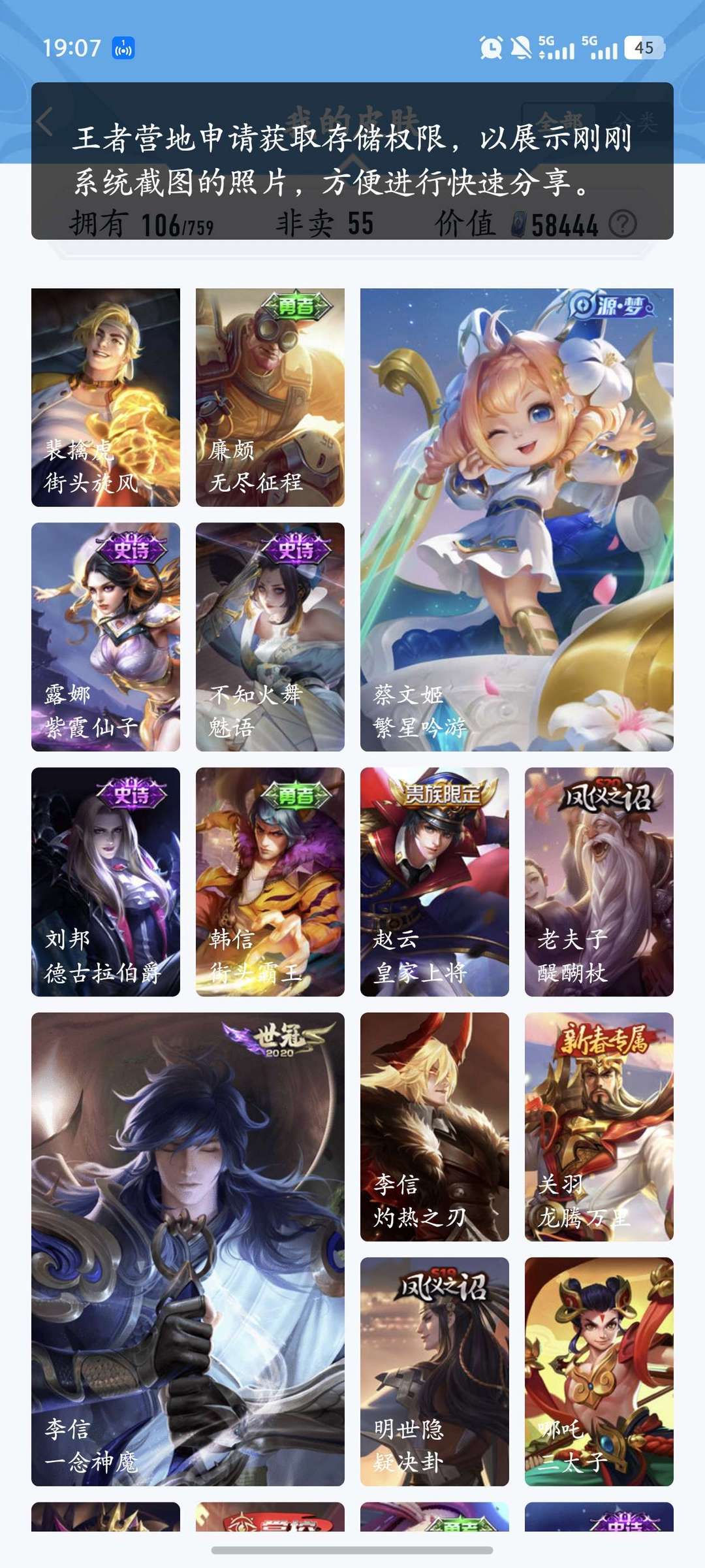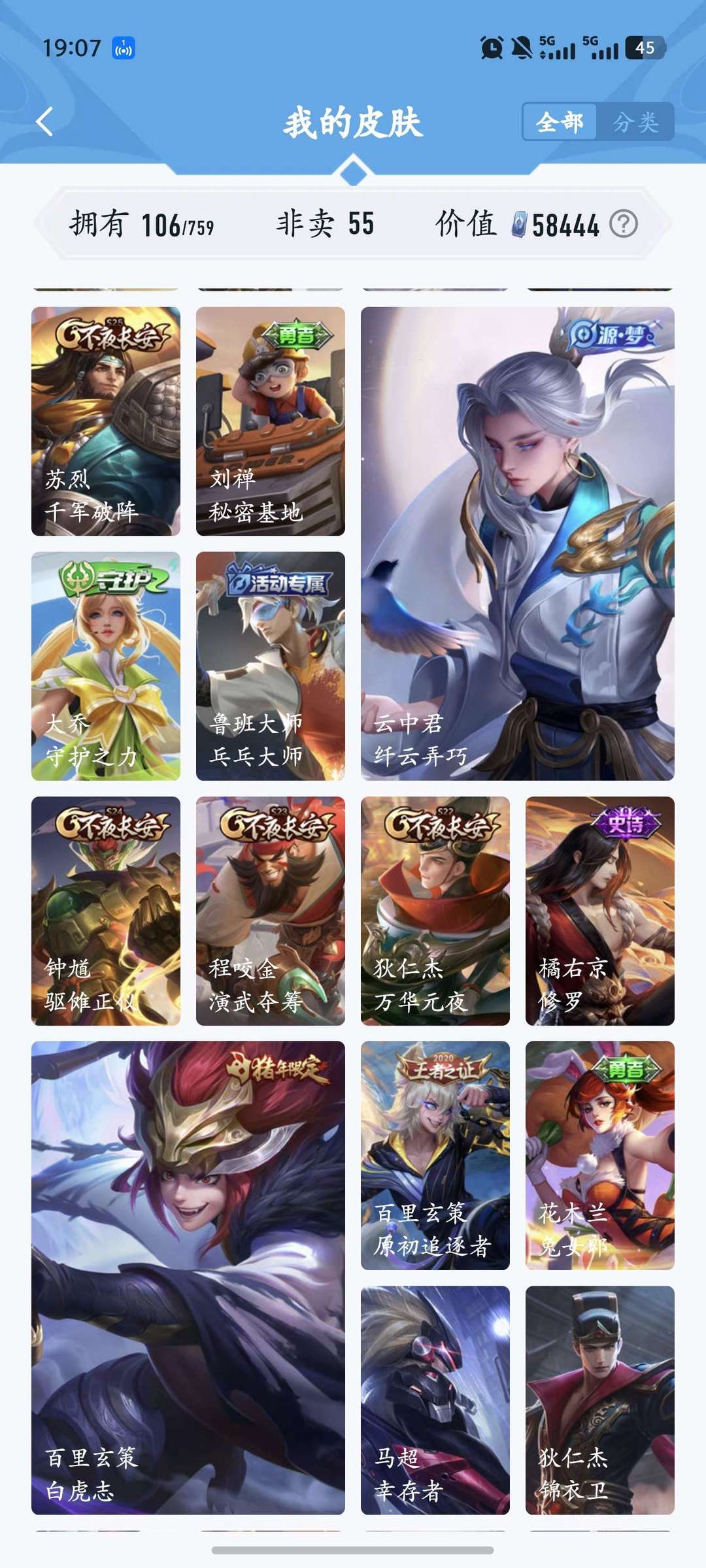 装备描述:皮肤多 李信韩信露娜等各种各样 不太记得了 很久没玩了 以前是v7