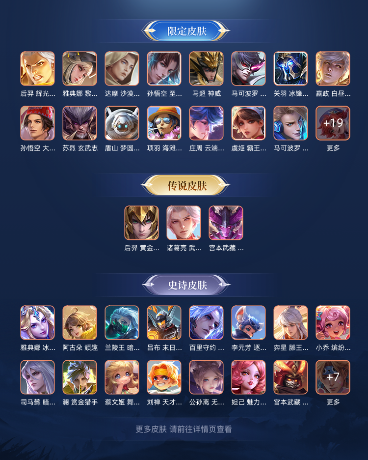 装备描述:贵族七 黄金射手座 冰封战神 地狱之眼 星元千年之狐 猴子三皮 玄武志 暗隐猎兽者 缤纷独角兽 白昼王子匿光破解者 逐梦之星 鲁班大师 KPL 限定 云端筑梦师 元梦繁星 天狼狩猎者 霸王别姬 五虎上将 天狼绘梦者 辉光之辰 大圣娶亲 华尔街大亨 神奇女侠 武陵仙君