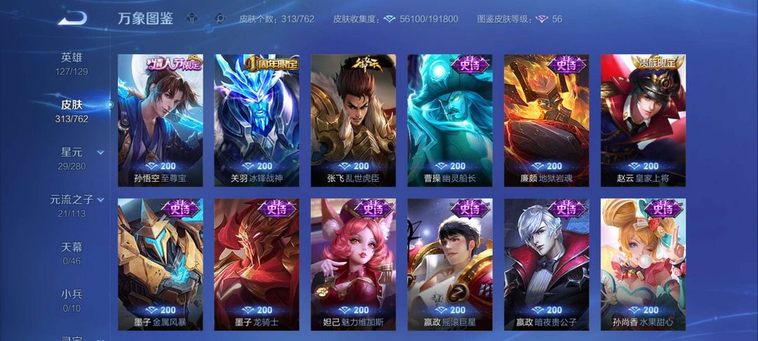 至尊宝.白虎志.一无双.可排位 不禁言,吕布典藏皮 韩信典藏皮