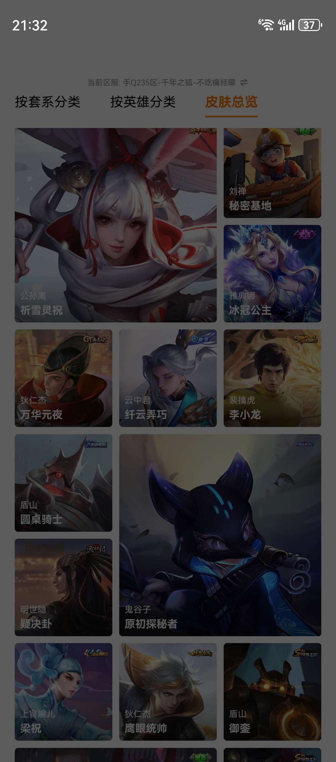游戏区服:王者荣耀-QQ安卓-QQ账号 -手Q235区-千年之狐