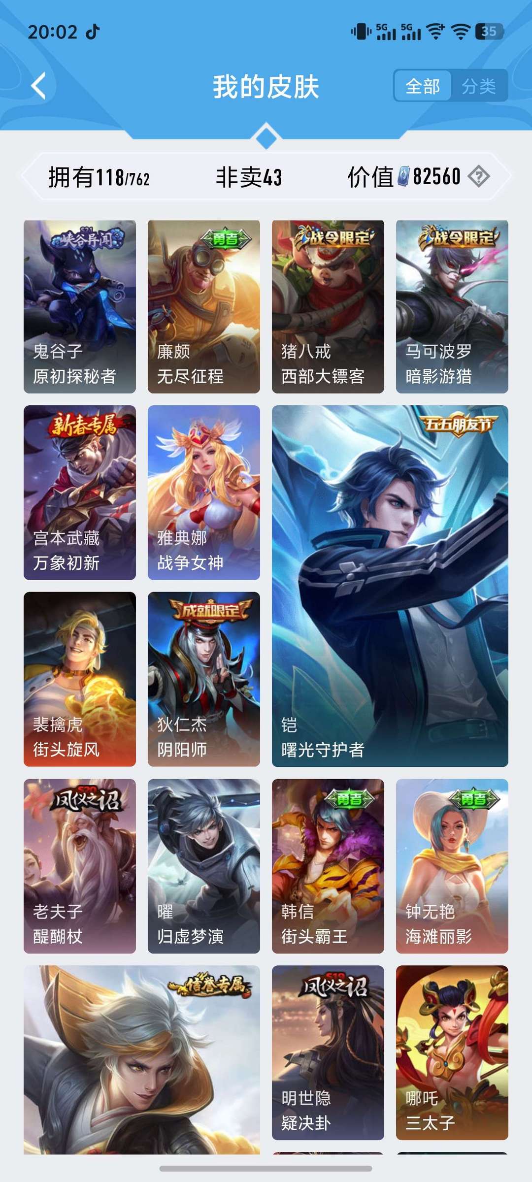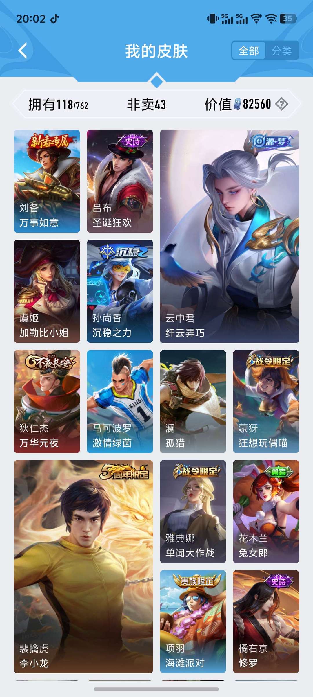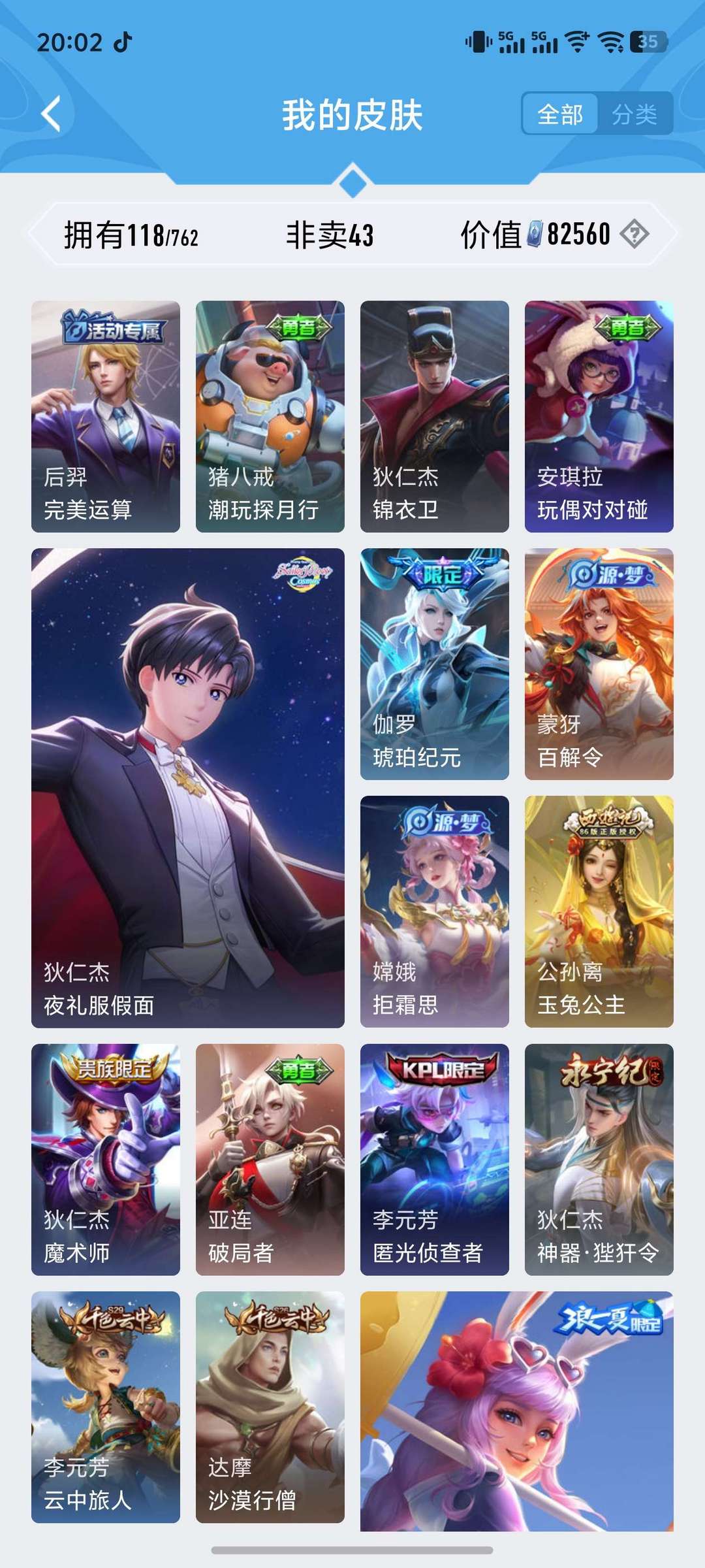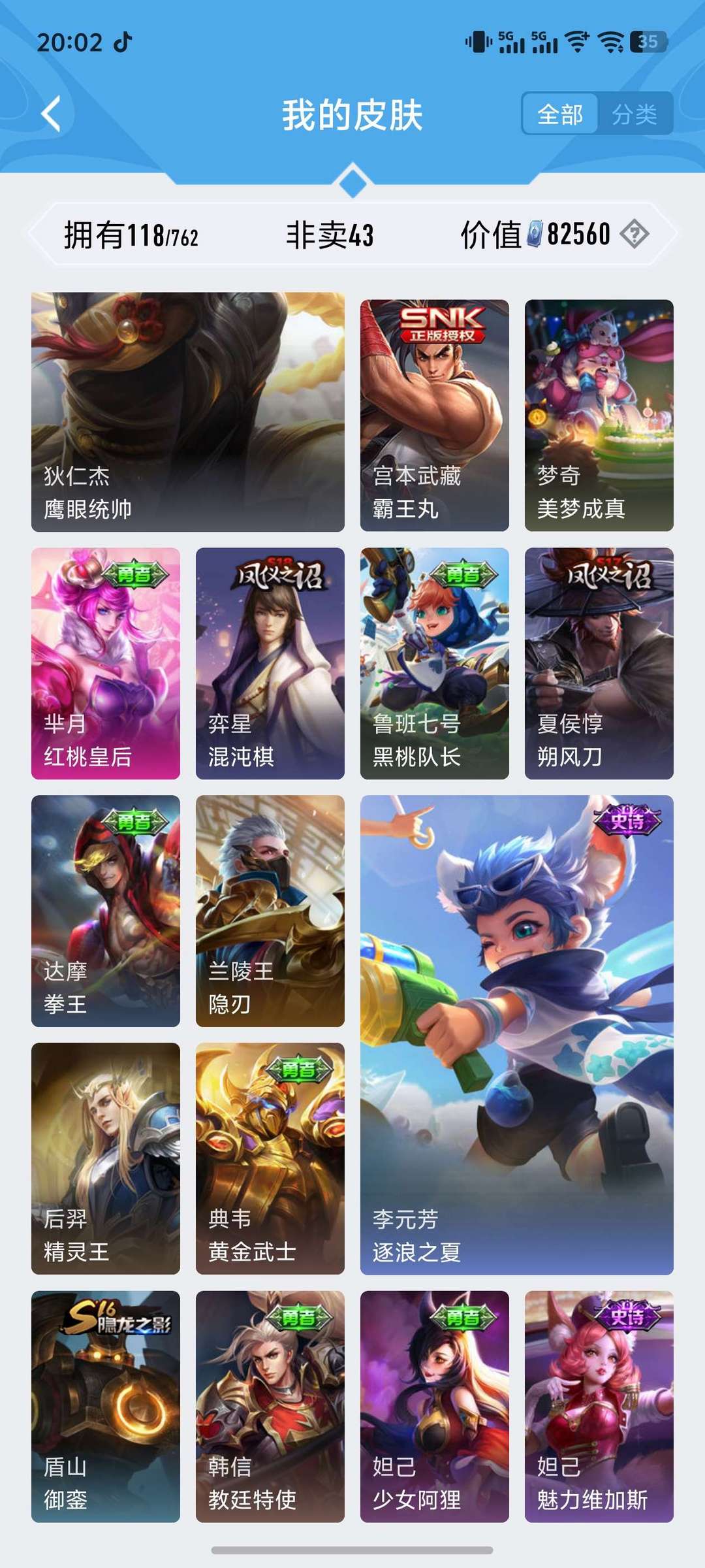 射手专精,射手限定皮肤很多,打野皮肤也不少