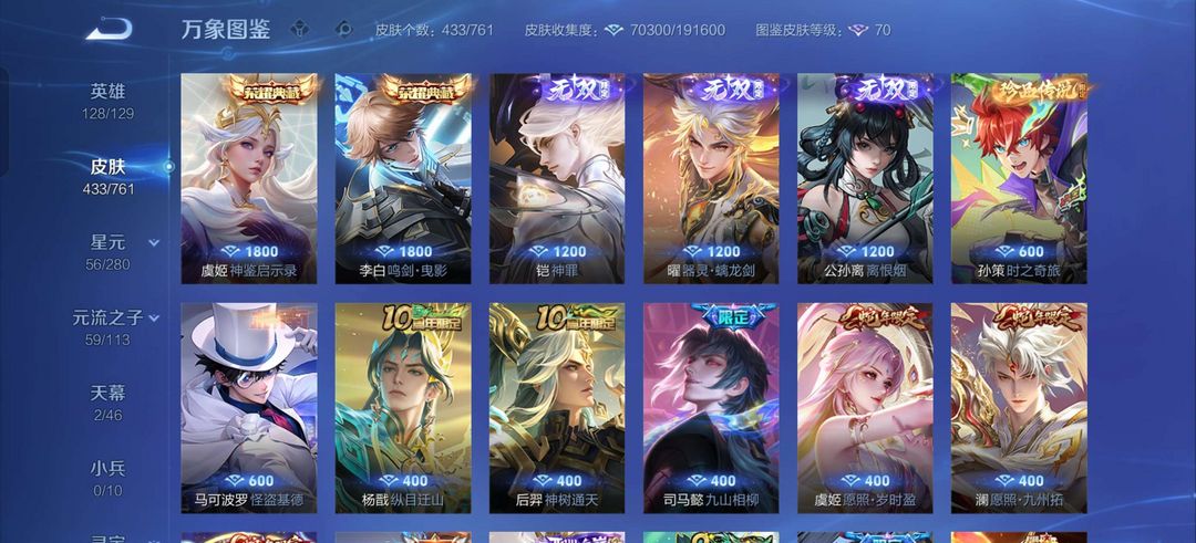 装备描述:全铭文,怪盗基德,李白铭剑,凯无双皮,马超全皮,孙策全皮
