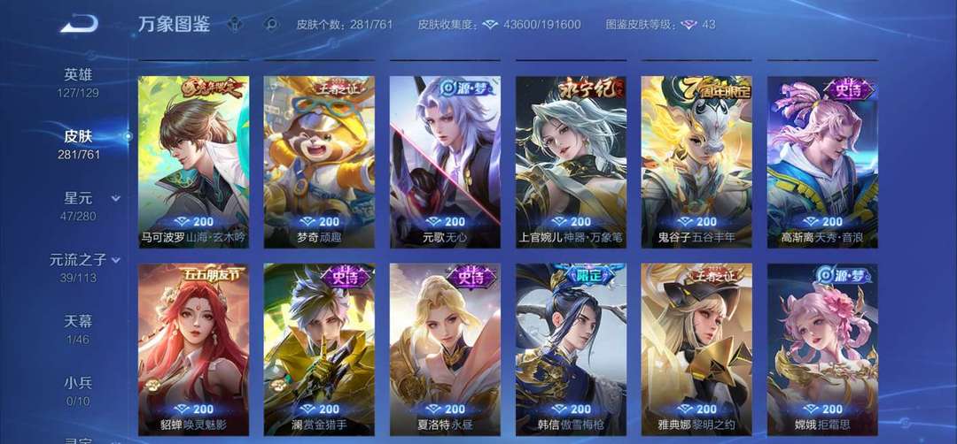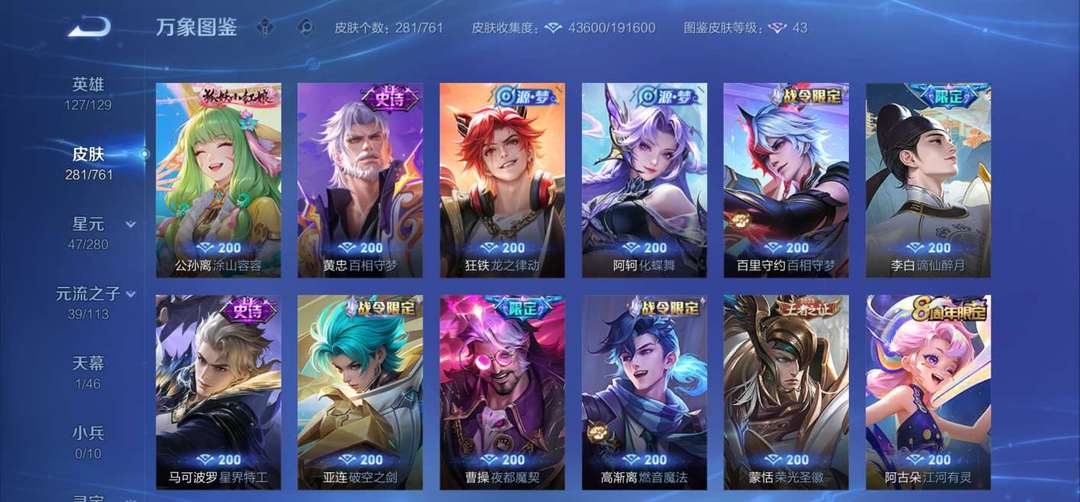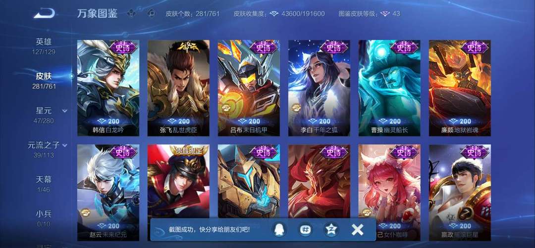 李白典藏无双,韩信典藏,狄仁杰星传说,孙尚香星传说