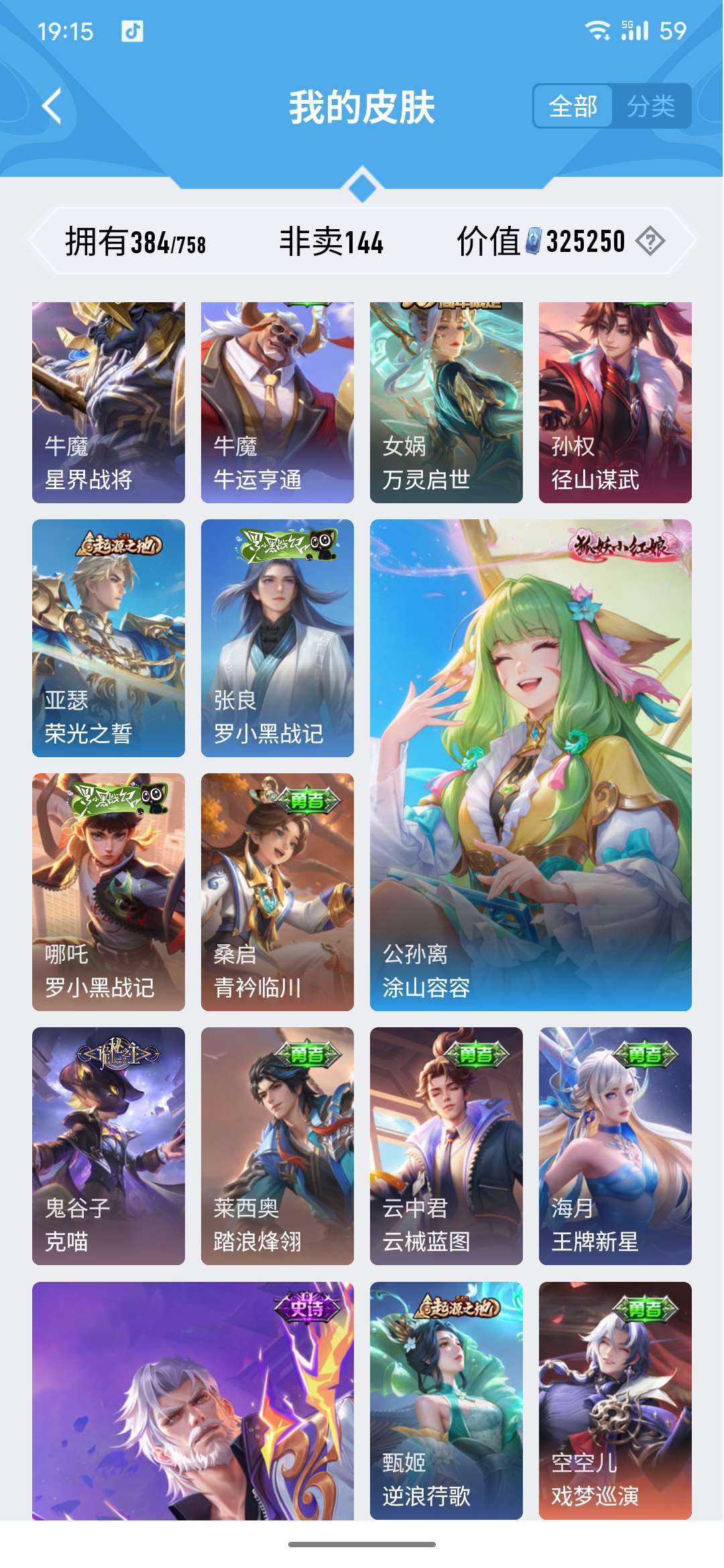 四典藏,猴子,貂蝉,伽罗,小乔,15传说