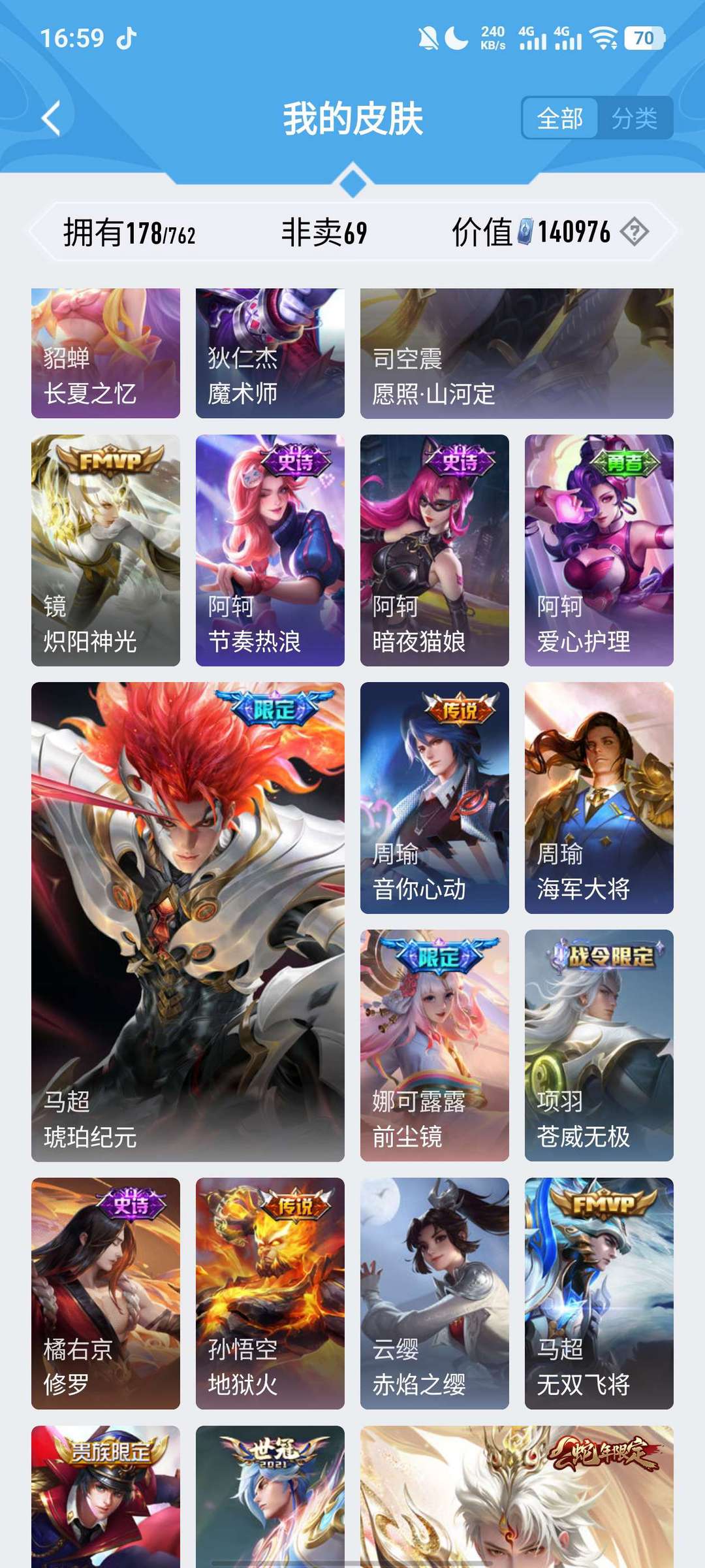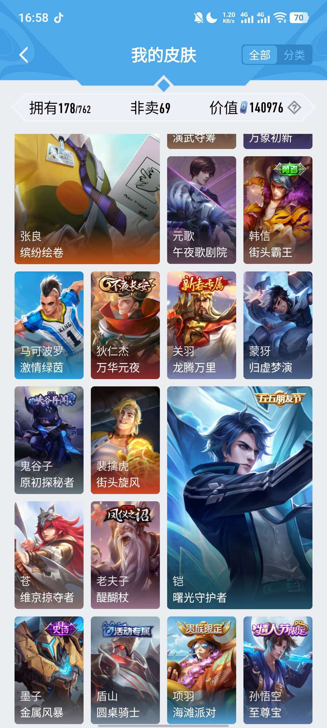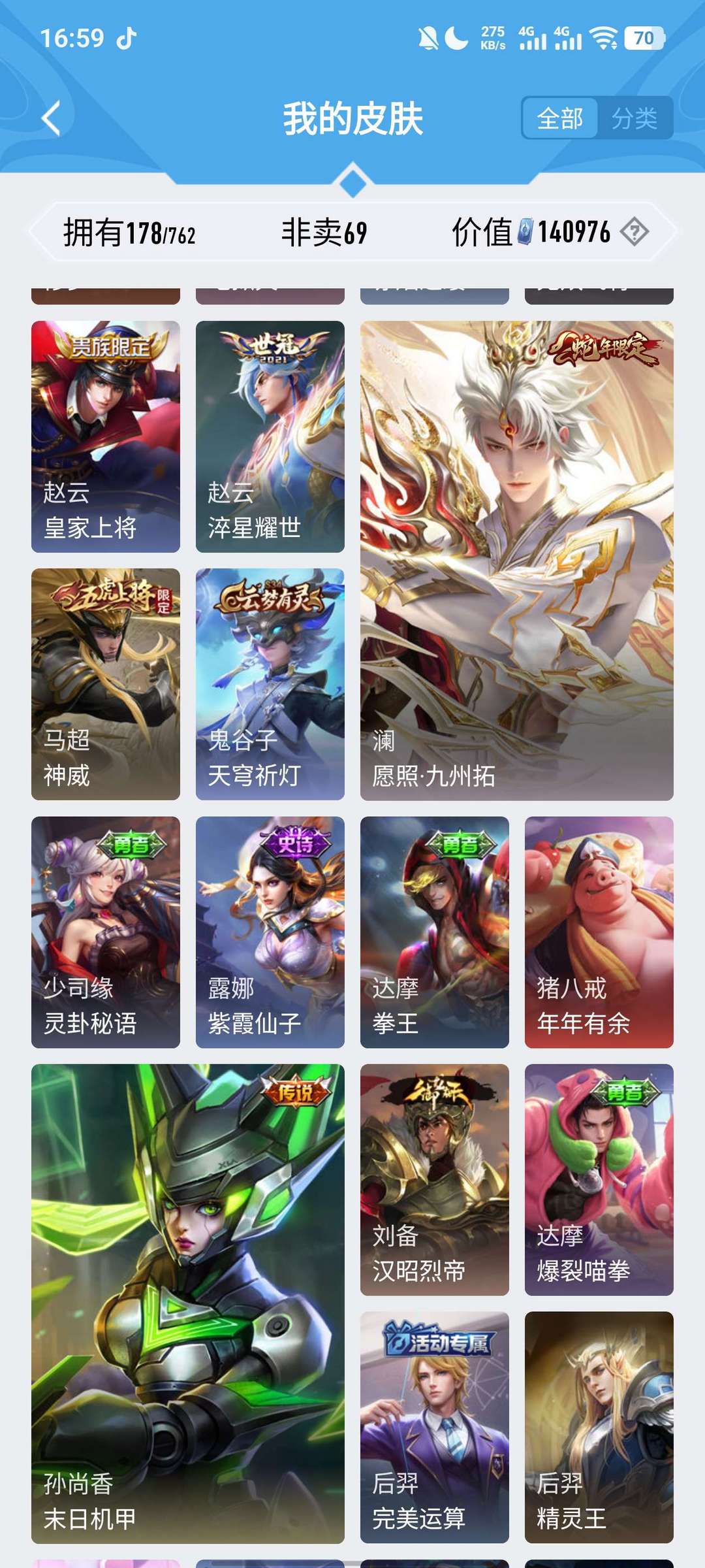 v7传说皮20个马超基本上全皮 很实惠