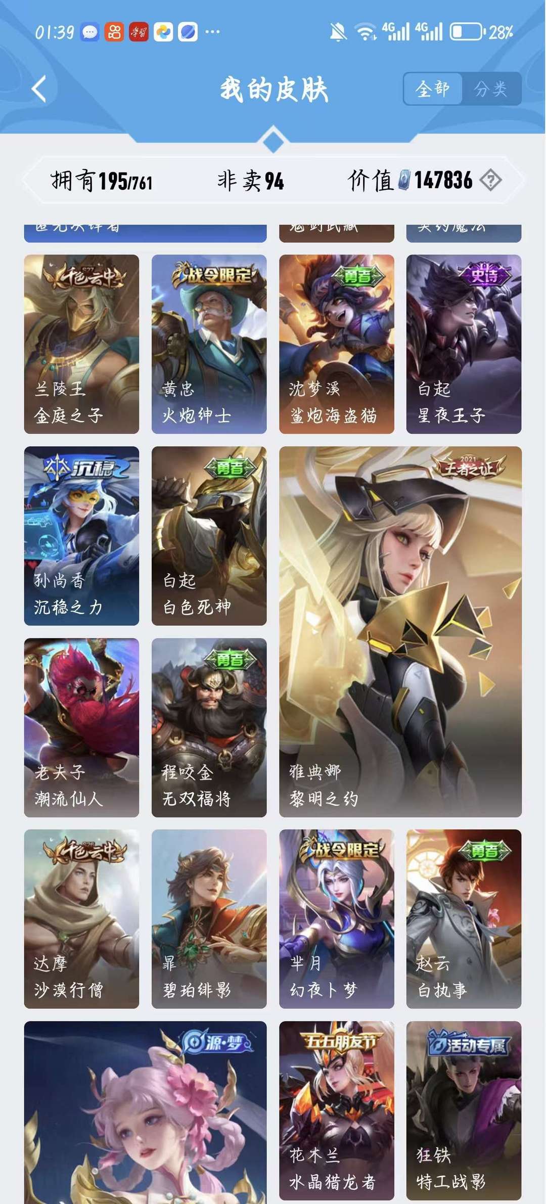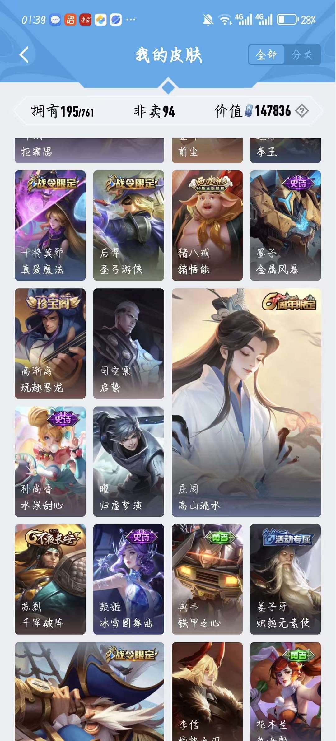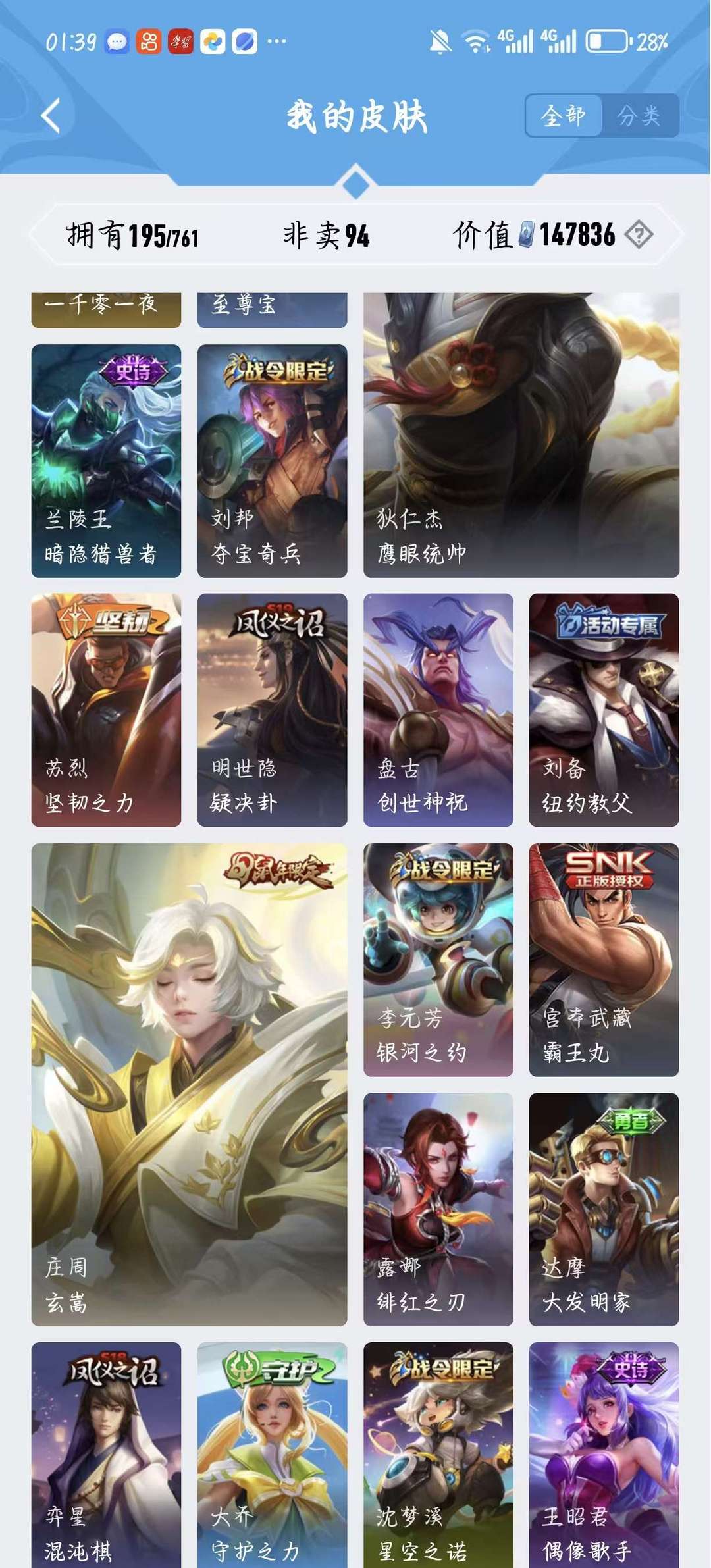 钻石段位可排位,有伽罗的典藏皮肤,有梅西,地狱火,至尊宝,黄金狮子座,末日机甲,等限定皮肤欢迎来玩