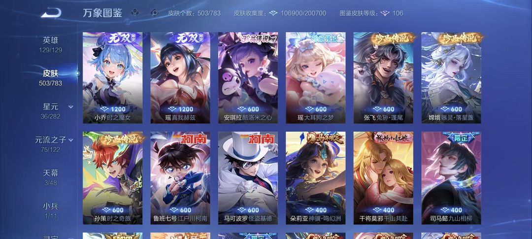 3典藏无双9⭐74传说⭐问心剑⭐️馥梦繁华⭐马年无相⭐天机白泽⭐曜螭龙剑⭐离恨烟⭐怪盗基德