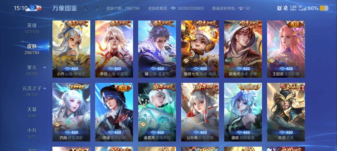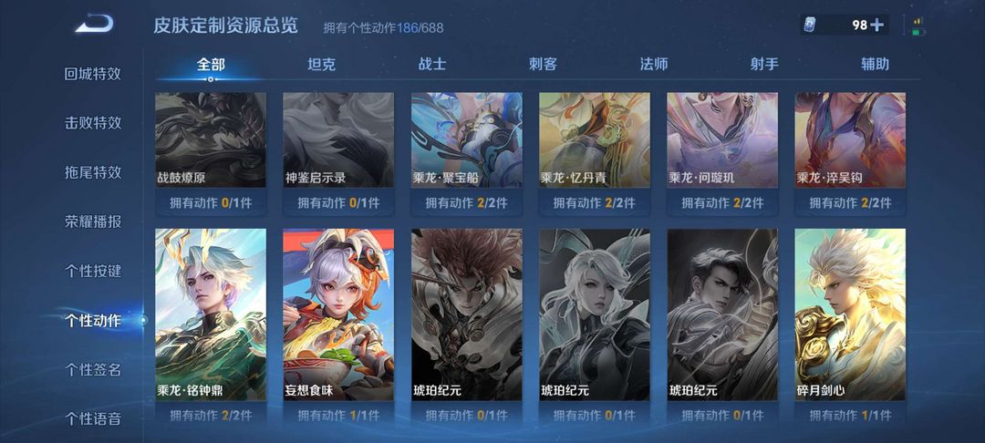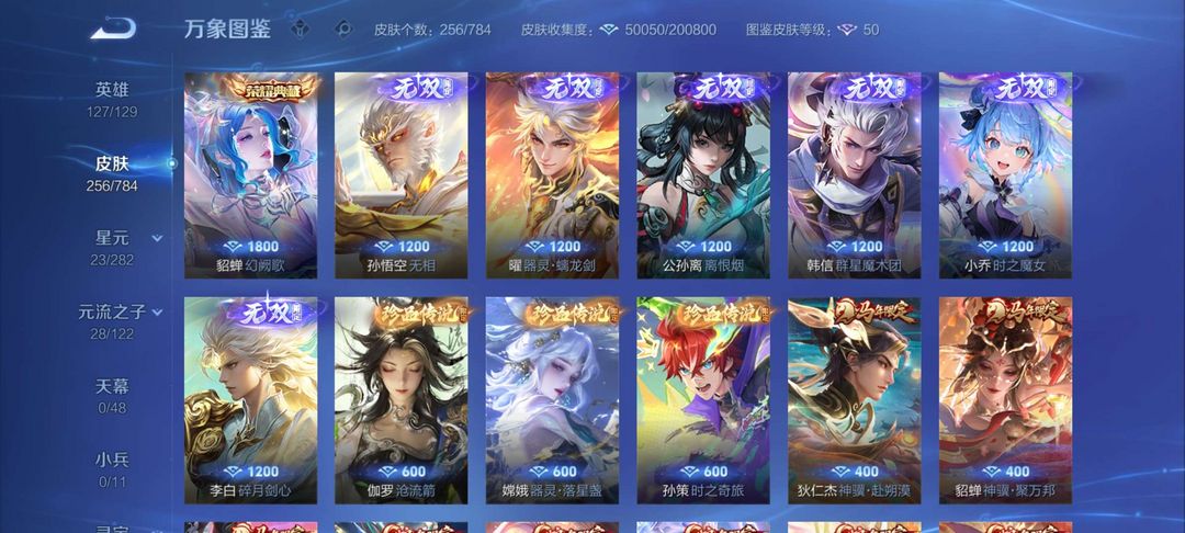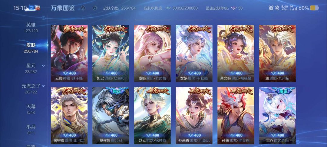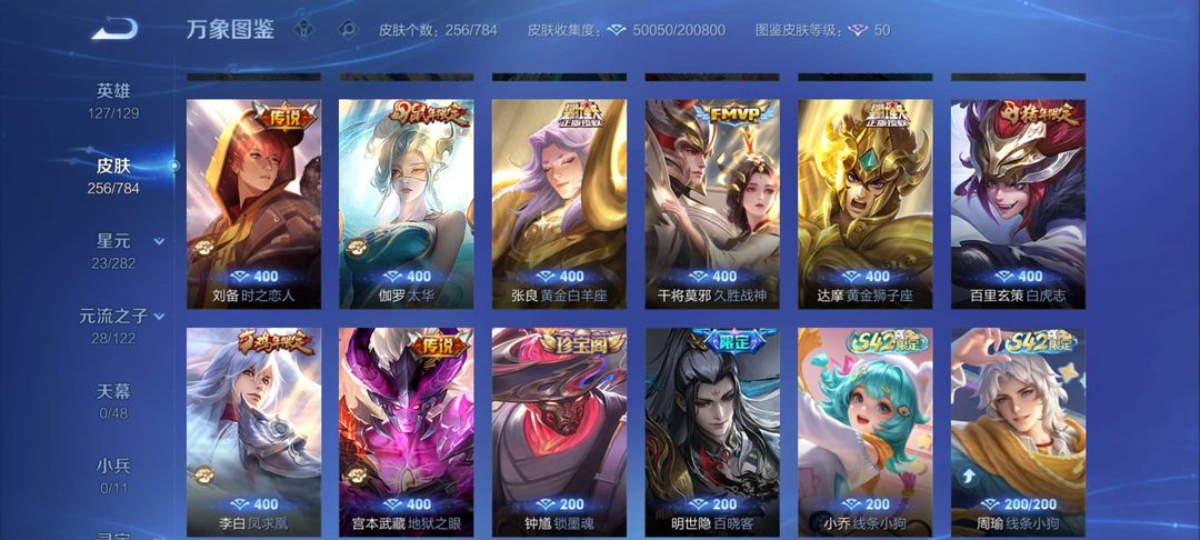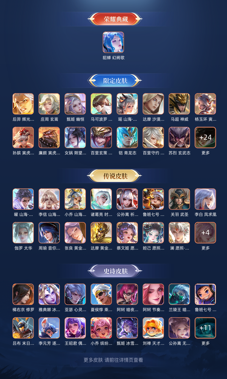 全年限 珍品传说3 无双6 典藏1 传说34 史诗73 限定95 英雄127