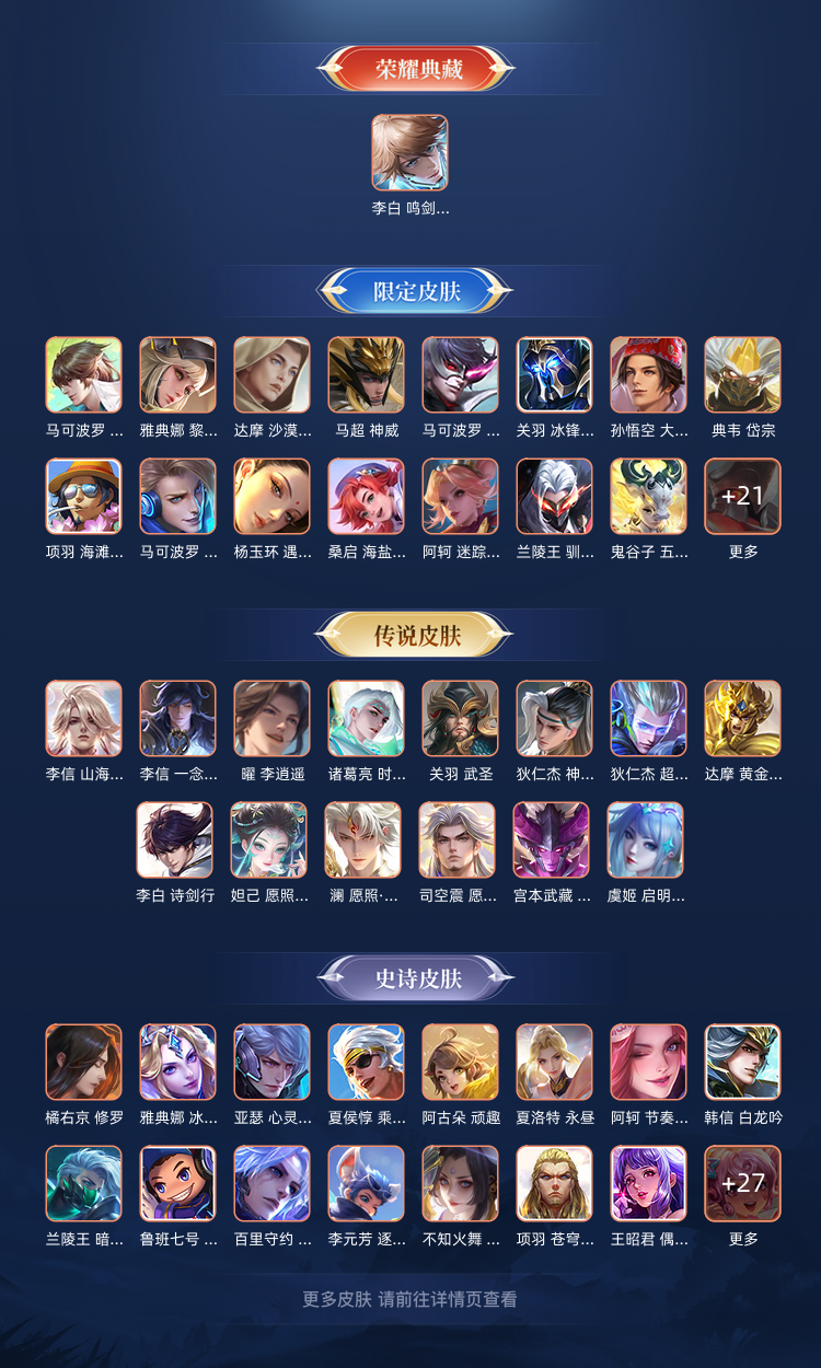 一典藏鸣剑曳影,左右二十款传说皮肤,打野/战士/射手的福音,辅助皮肤较少