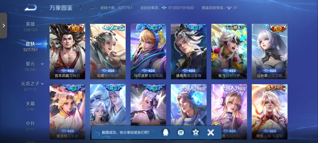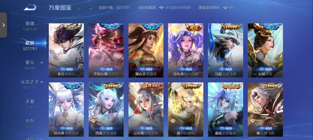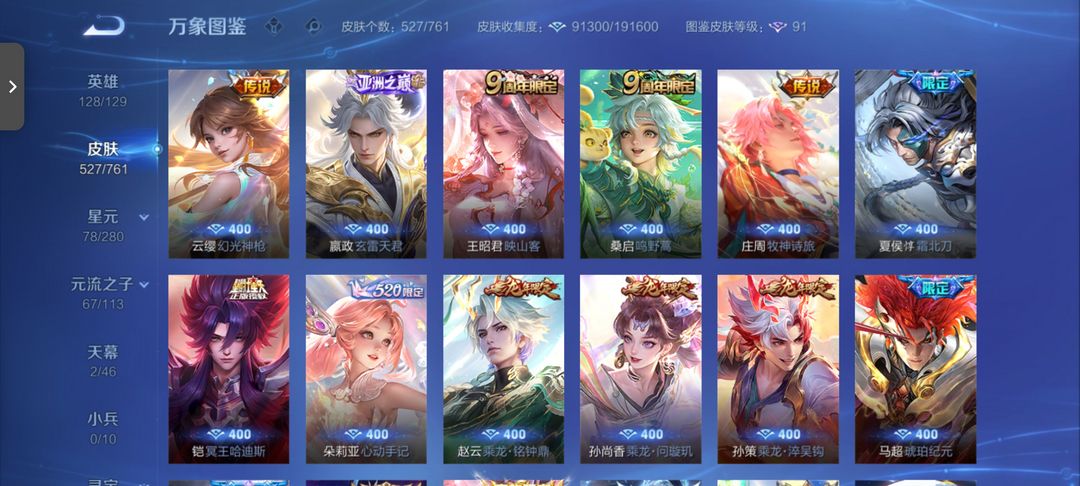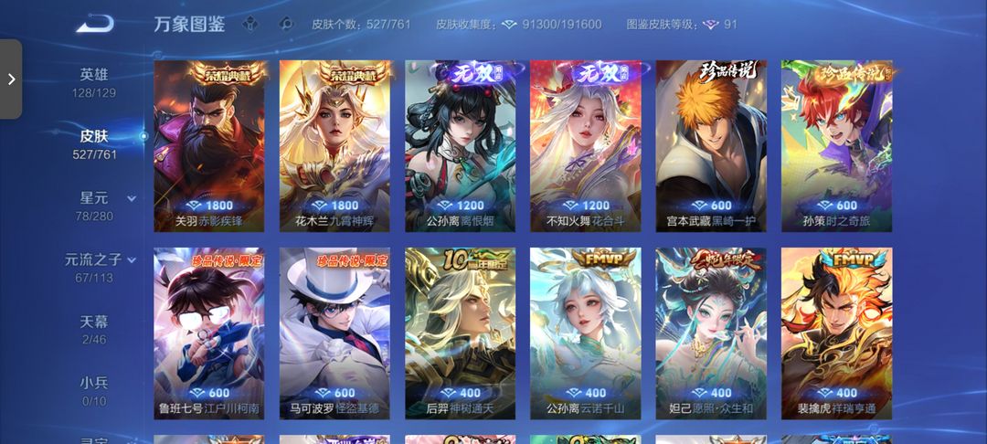 ✨新典藏7无双皮9珍品全皮✨万战公孙离恨烟花合奇旅怪盗柯南✨全新生肖限定皮肤✨全新限定传说皮肤✨带妹