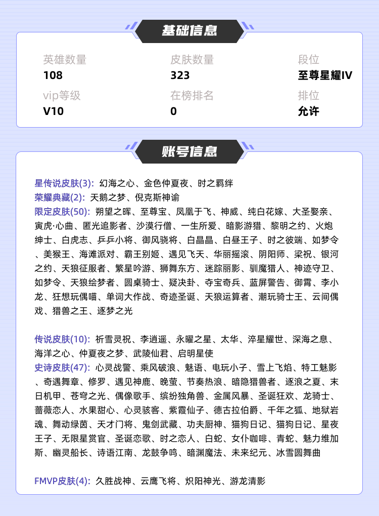 V区全英雄满铭文535皮肤(自玩号)