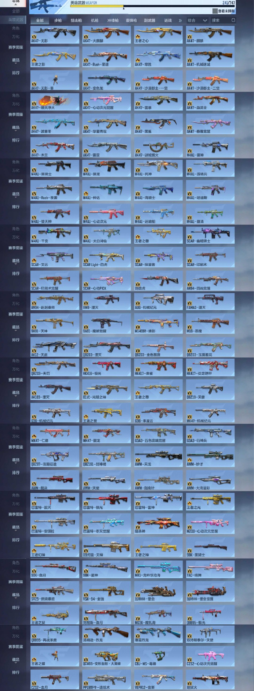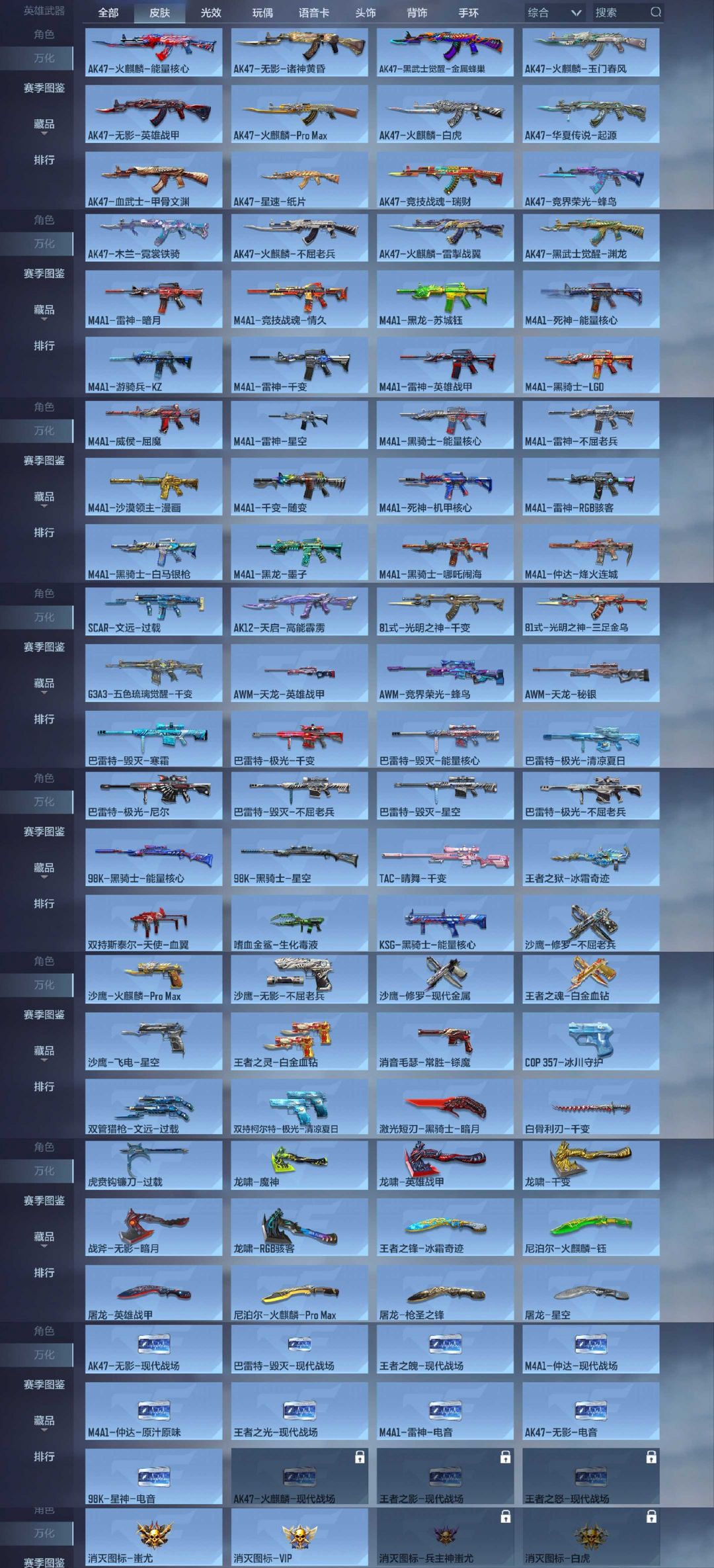 装备描述:英雄武器269个, 王者武器21个。军衔: 荣耀元首,段位: 枪皇,拥有:樱,复仇者,堕天使,等10个角色,特殊装备有:AK47游骑兵、巴雷特毁灭、M4A1游骑兵、源·黑武士、麒麟刺、巴雷特极光、仁德、尼泊尔火麒麟、沙鹰火麒麟、火麒麟、雷神、黑武士手雷闪光弹、地狱烈炎、王影、孟德、王者力、G36机械纪元、M4海骑士、M12雷霆王者、M200心动次元觉醒、98K黑骑士、闪光弹雷霆、无影、墨刃幻神、巴雷特冬灭觉醒、王影烟雾弹闪光弹、哈迪斯、巴雷特雷霆、孟获、巴雷特枪娘、王势手雷烟雾弹闪光弹、烟雾弹游骑兵、血武士、雷麒麟、81光明神、星神、QCW变形金刚大黄蜂、81阿波罗、死神闪光弹、AUG机械纪元、燃烧弹游骑兵、黑骑士闪光弹、源·左轮黑武士、AK麒麟、幻神、王势、AWM妙才、仲达、QBZ王者蔷薇、王神、COP安琪拉、奉先、COP雷霆、星象、81机械纪元、AWM竞界荣光、尼泊尔机械纪元、王狱、黑龙魂、火麒麟闪光弹、王兽手雷、王心手雷烟雾弹闪光弹、王翼烟雾弹闪光弹、闪光弹浪子娃、SCAR心动PICK、M4七色宝葫、巴雷特朱雀、KSG黑骑士、王心、王魂、王业、镰刀哈迪斯、USP仁德、堕天使
