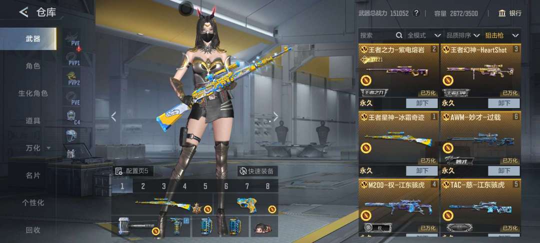 基本为全狙号,王力+王幻+王者星神+权等,狙击爽号,所有顶级狙应有尽有,万化皮肤一应俱全,还有王者葵