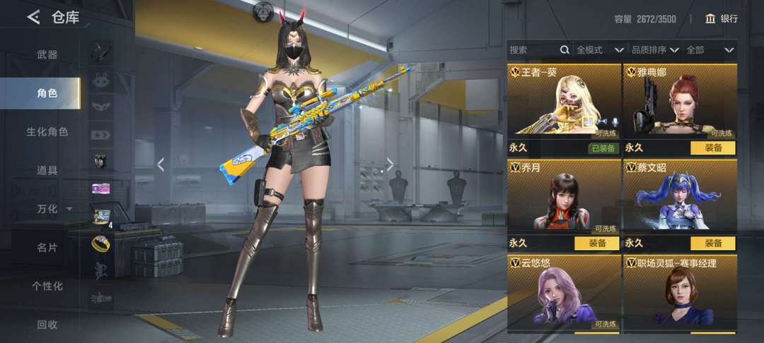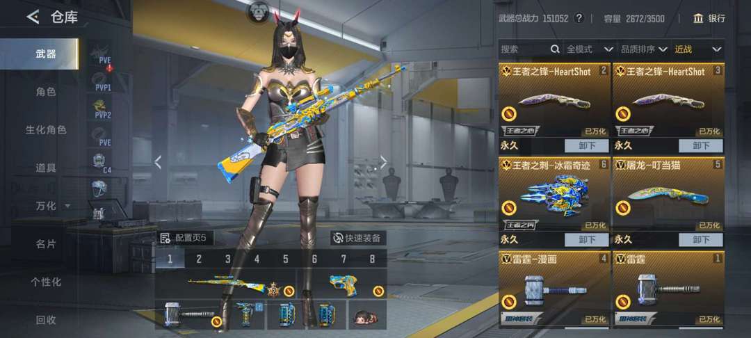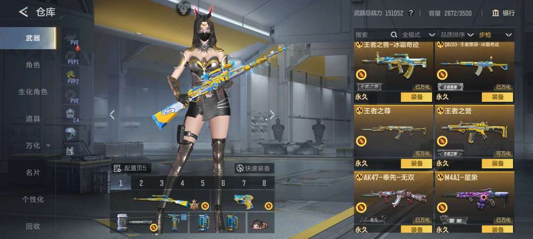 装备描述:王力紫电+炫金皮,王幻紫电+女团+冰皮+EP皮,王者星神冰皮,权江东皮,游骑兵狙永恒+寒霜+紫嫣皮,慈江东皮,王掣冰皮,王霆巴雷特,81瑜,奉先,星象,仲达,王翎,王圣,王戮,游骑兵,仲康,孟获,生化有宙斯,王霆大炮,王蝶,双脊龙,王者核弹全都有,包括王翼雷,两把雷霆锤子,两把王峰拉丝,消灭音效一大堆,狙击枪线一大堆,王者葵有狙击切枪加速暴走,收藏点677级+英雄级武器种类巨多,排位可玩,狙击手推荐