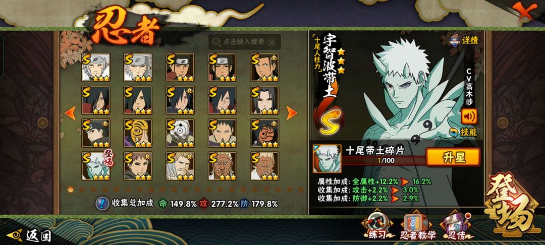 50s 2480w 314忍者 十尾带土已经秒了 舍人须佐止水已出 所有高招