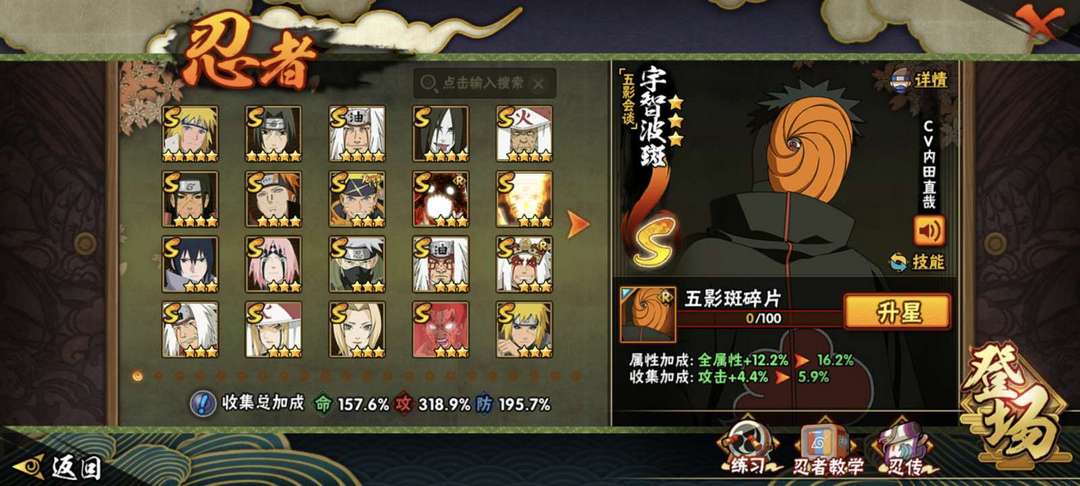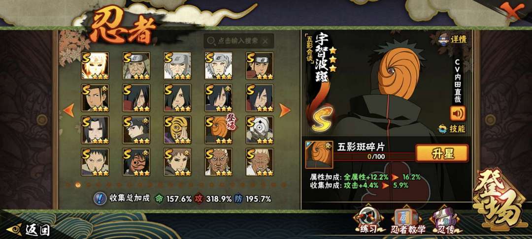 装备描述:375个忍者51S81A青春哥 大鲨鱼 10级霸体 熊猫 二尾