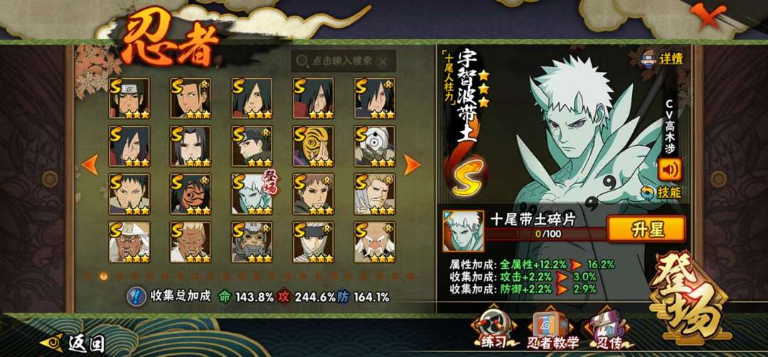45个S,58个A。魅力值47。秘卷霸体 散十二级,有熊猫 六道带土已出