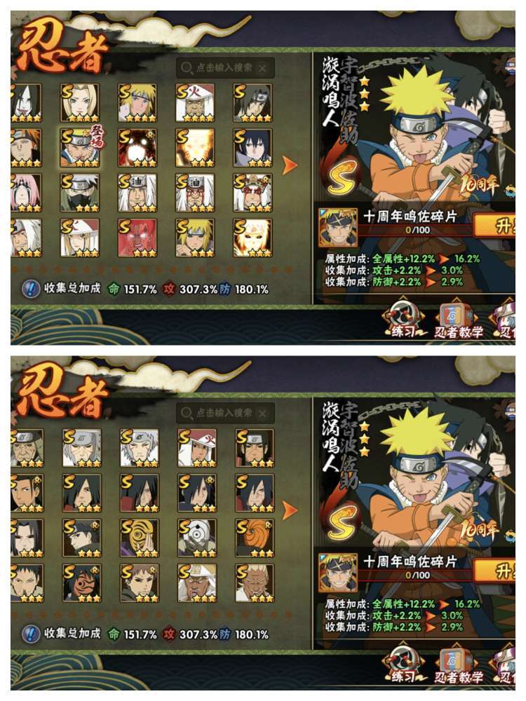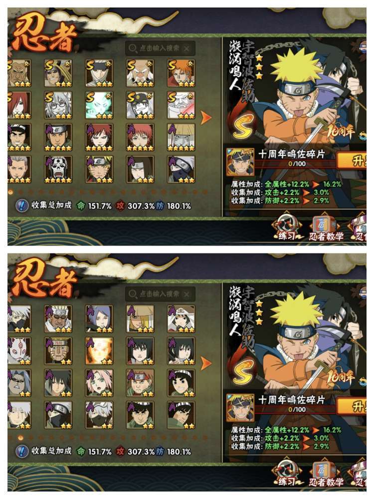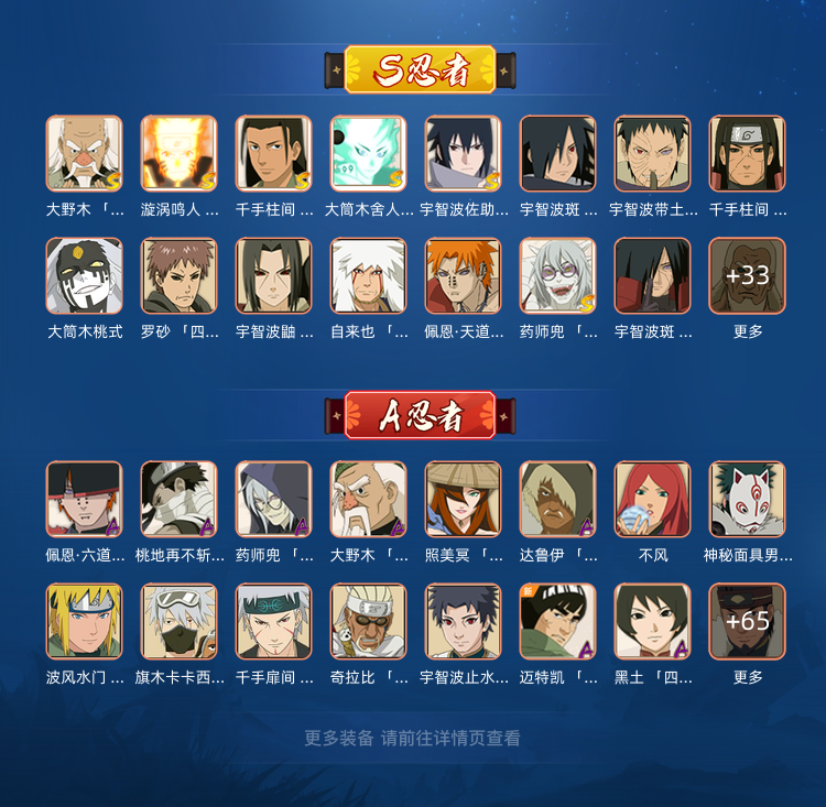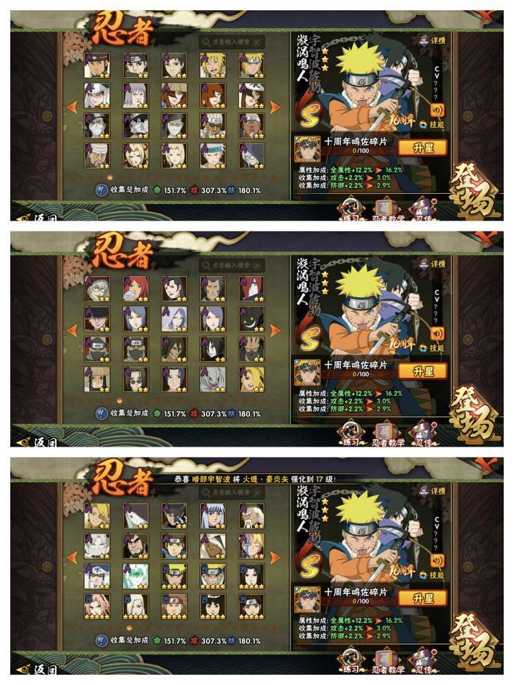 50S♣82A♣357忍♣漂泊带土加时装♣须佐卡卡西♣须佐止水♣忍战艾♣各个高招忍者♣青春哥