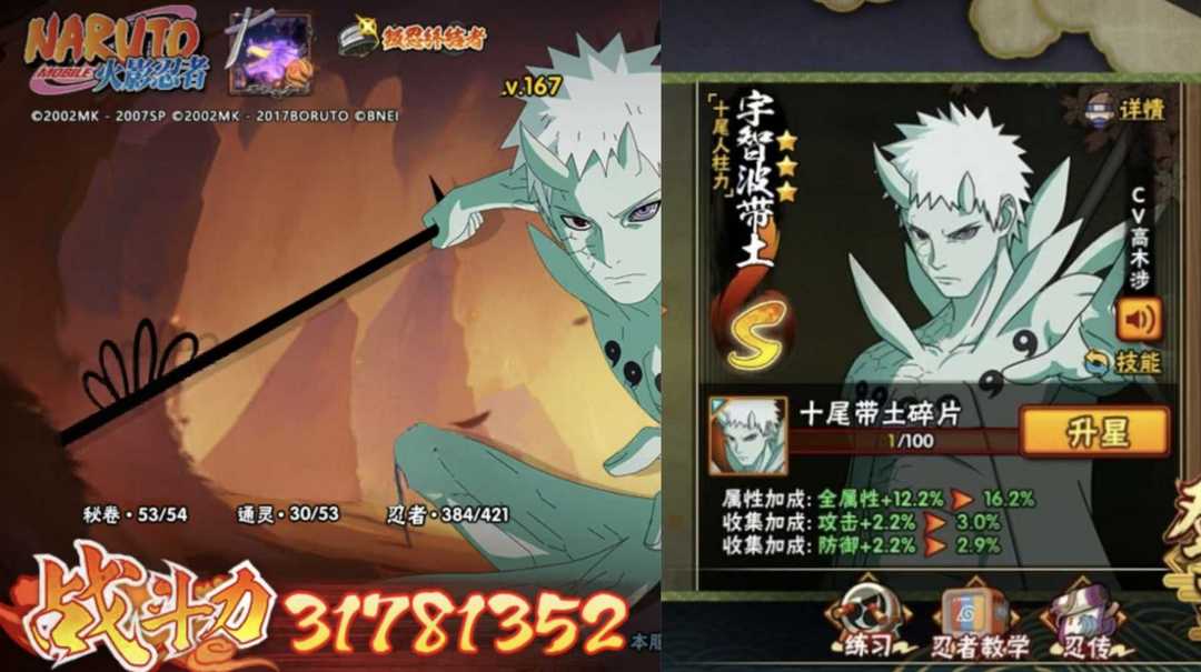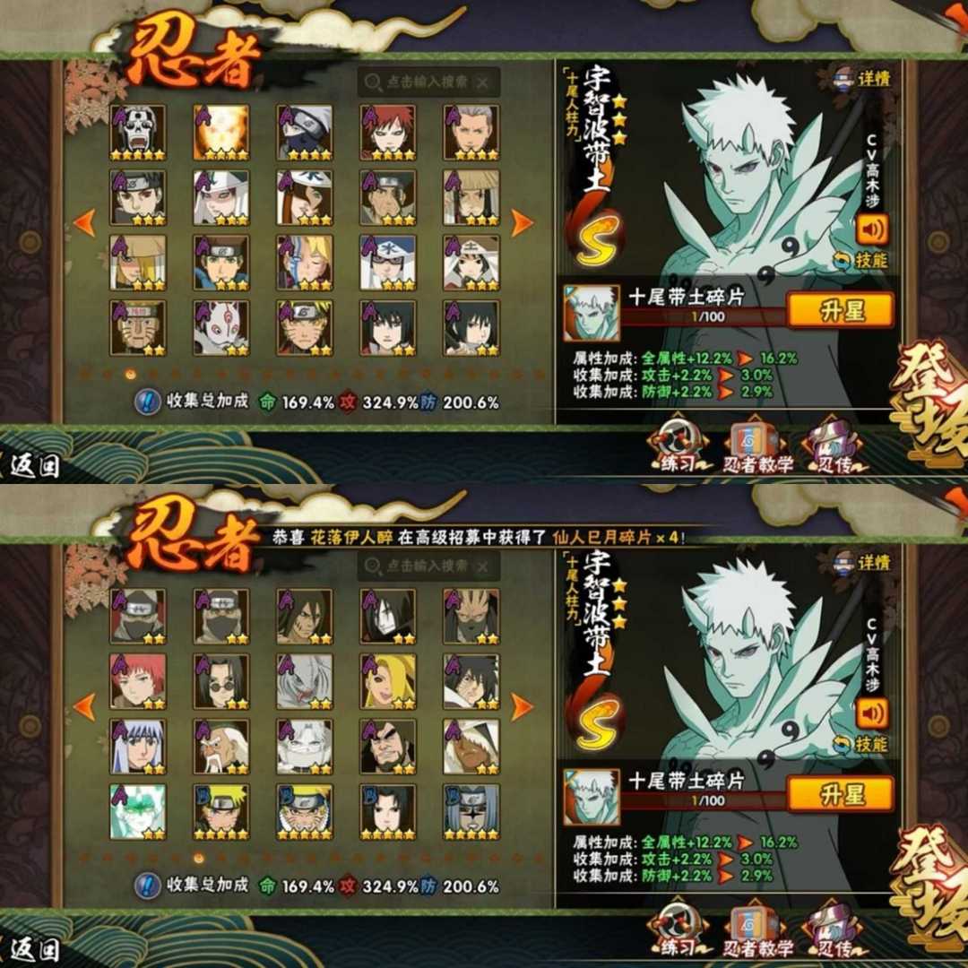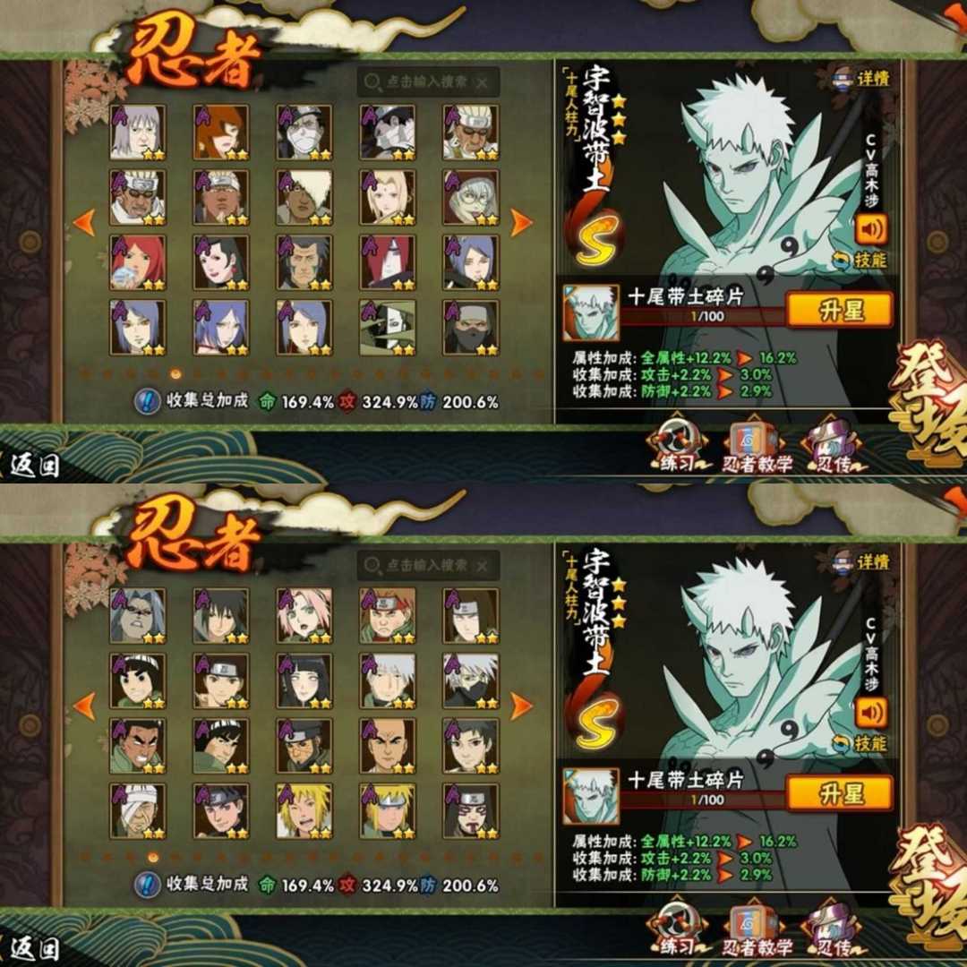 十尾带土✨黑绝✨56S忍✨3200万战力✨熊猫螃蟹二尾✨忍战带土✨团本利器