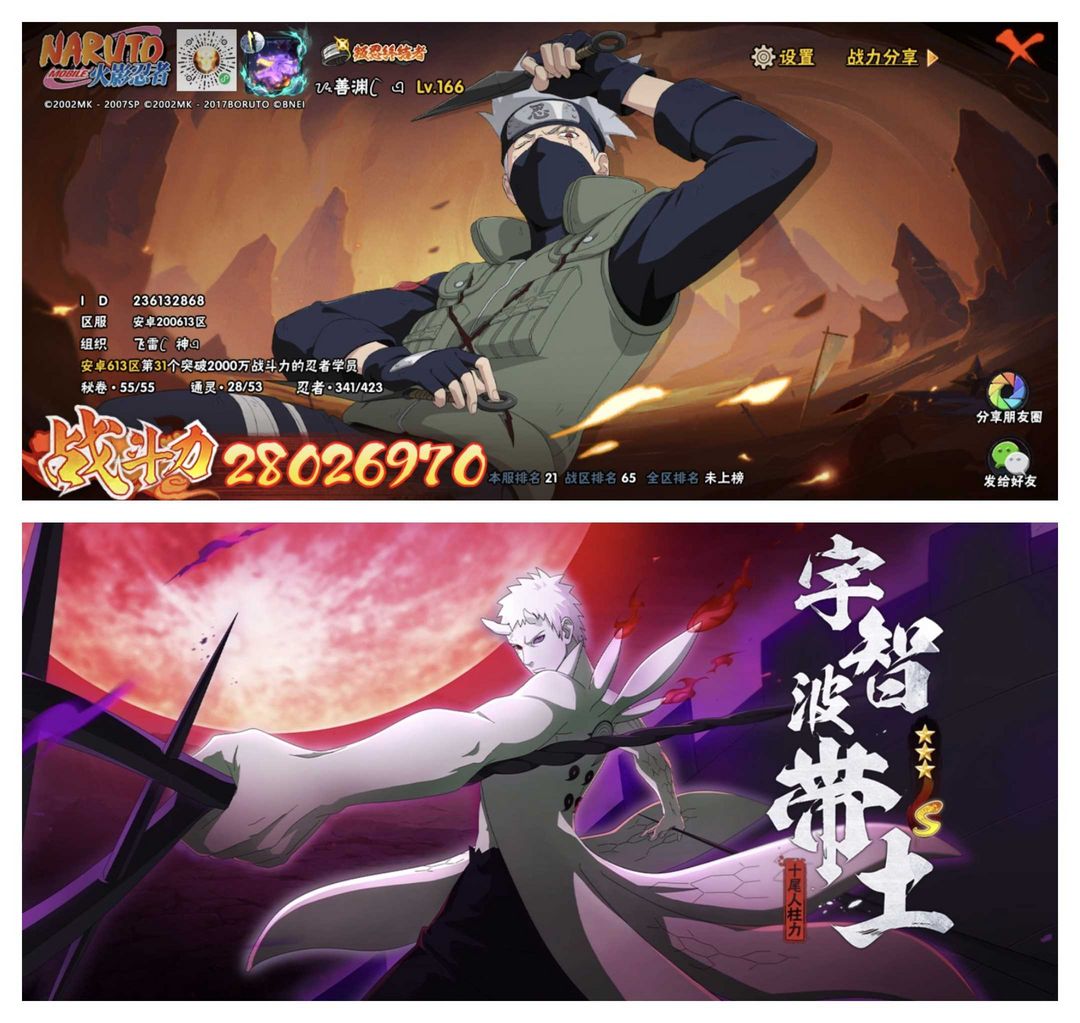 VX区❤️神威对决旗木卡卡西♊56S❤️十尾人柱力带土❤️2800W战力♊宇智波斑