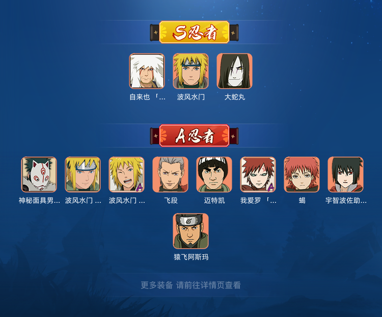 面麻✨新春水门✨万花筒佐助✨百战水门✨川剧自来也✨百战大蛇丸✨飞段✨我爱罗✨虐菜✨练忍者✨到时不