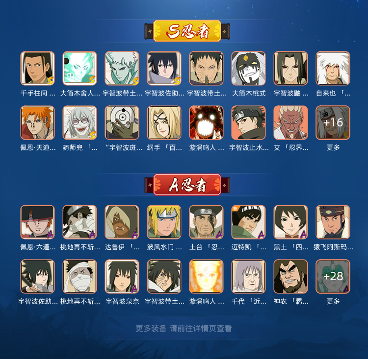 十尾带土-阴水门-六尾鸣人-舍人-须佐卡卡西-白面-断臂雷-黑绝-盾-绯流琥-神农-破面