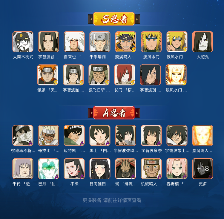 17S,40A已出,秽土初代暴怒小孩,金水,死二,秽土长门,秽土三代,秽土水门,秽土鼬,解斑,