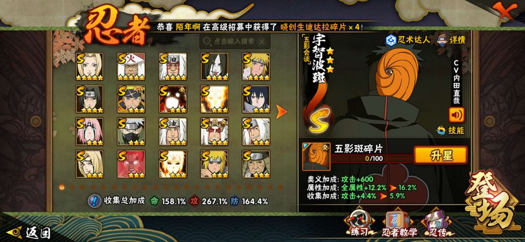 晓创生迪达拉体验卡✔️十尾带土❤2600万战52S忍❤漂泊佩恩✔️天道超✔️须佐止水✔️大筒木舍人
